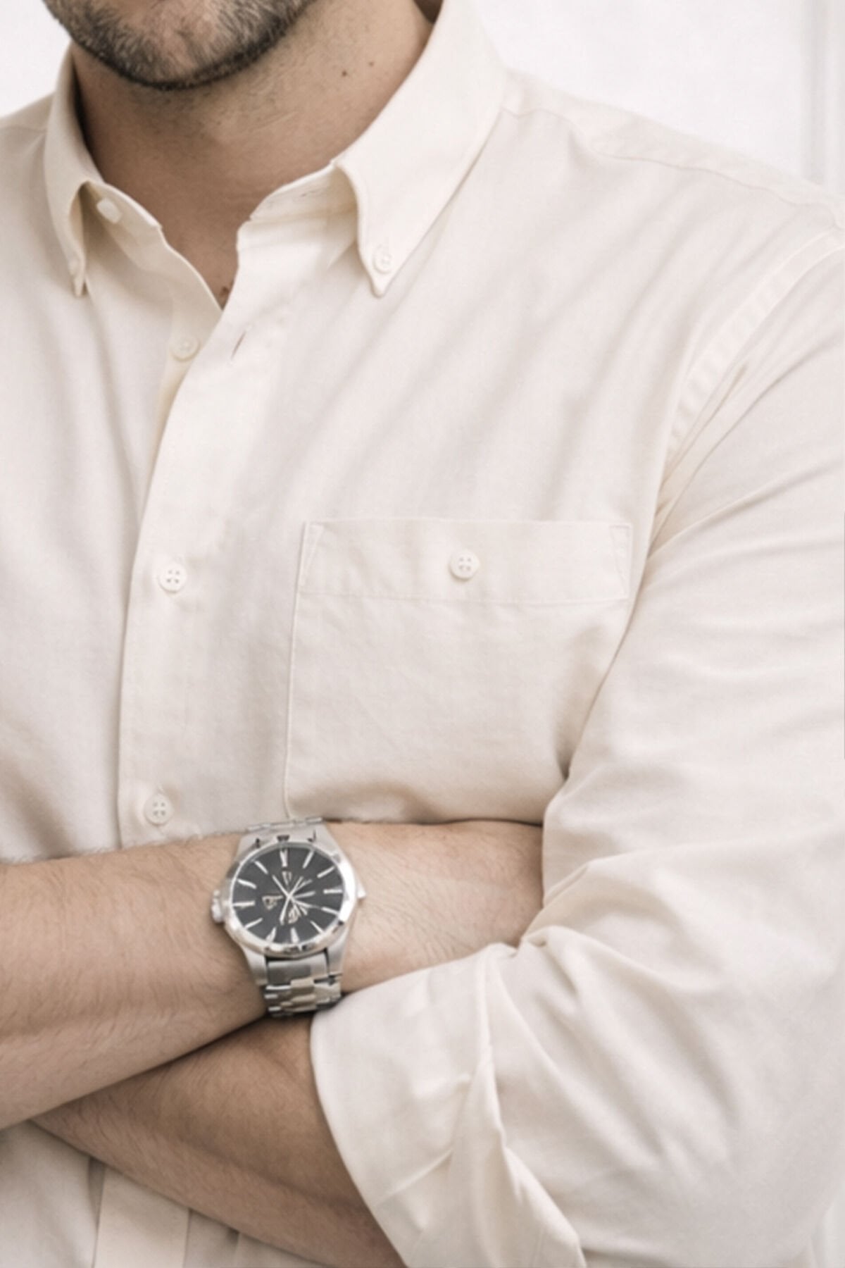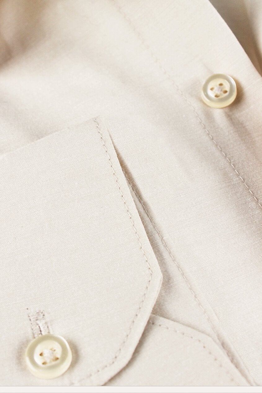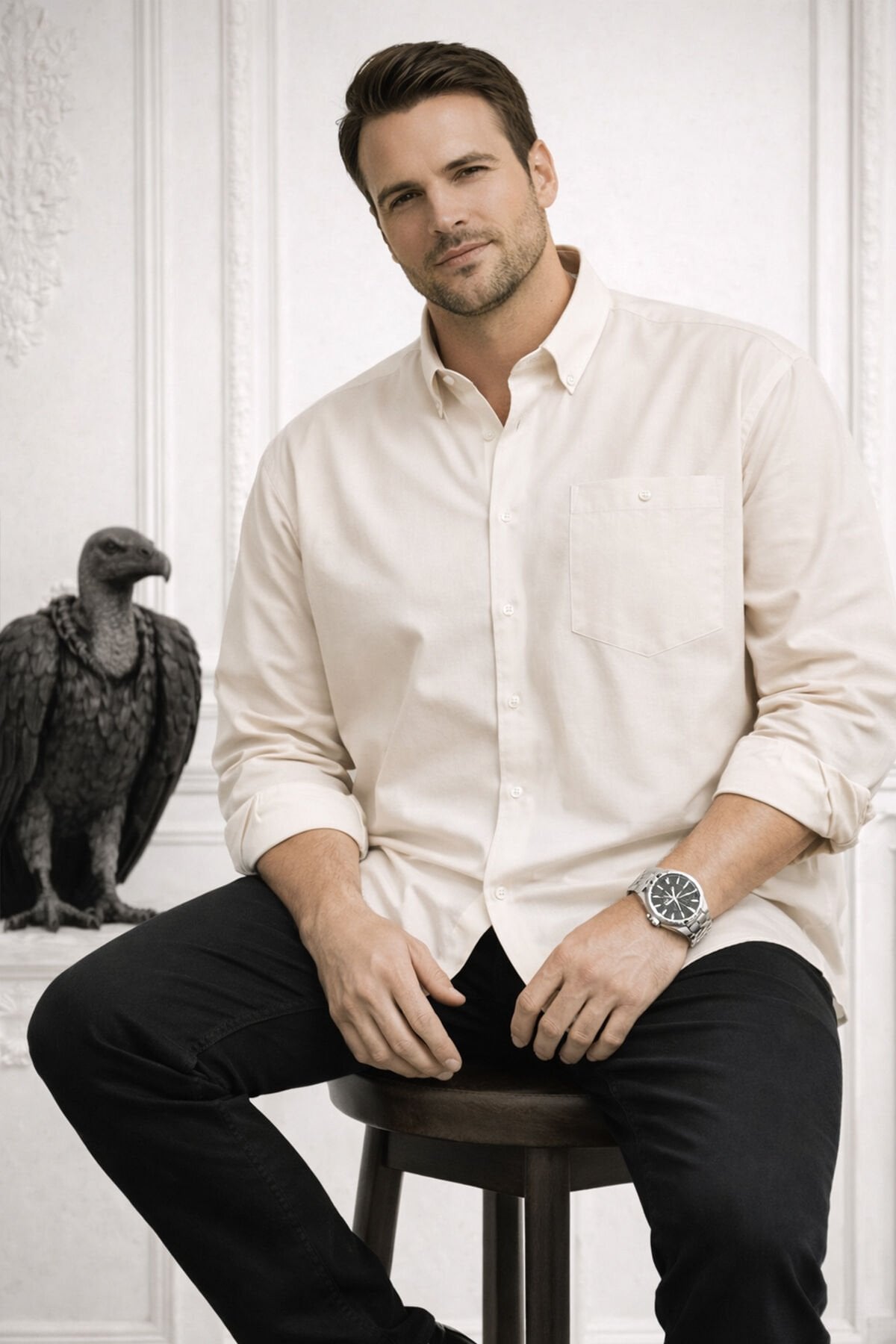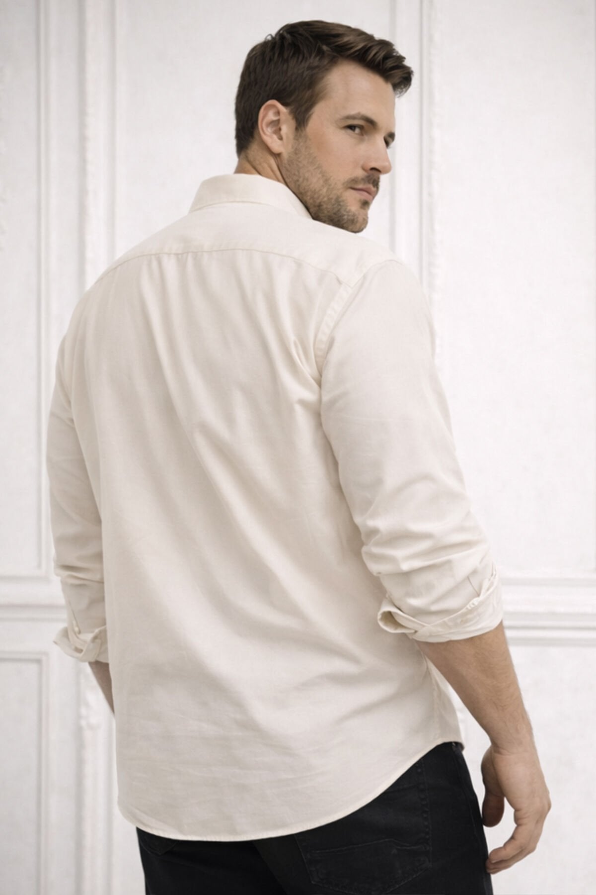 İçerik: Klasik kesim tek cepli; Uzun kollu yaka düğmesiz erkek gömlek; Stüdyo ışığından dolayı ürün 1 ton açık çıkabilir