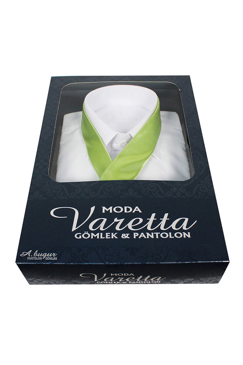 Kutunun içerisinde; 1 Adet gömlek + 1 Adet Kravat + 1 Adet Mendil + 1 Adet Kravat askısı bulunmaktadır.