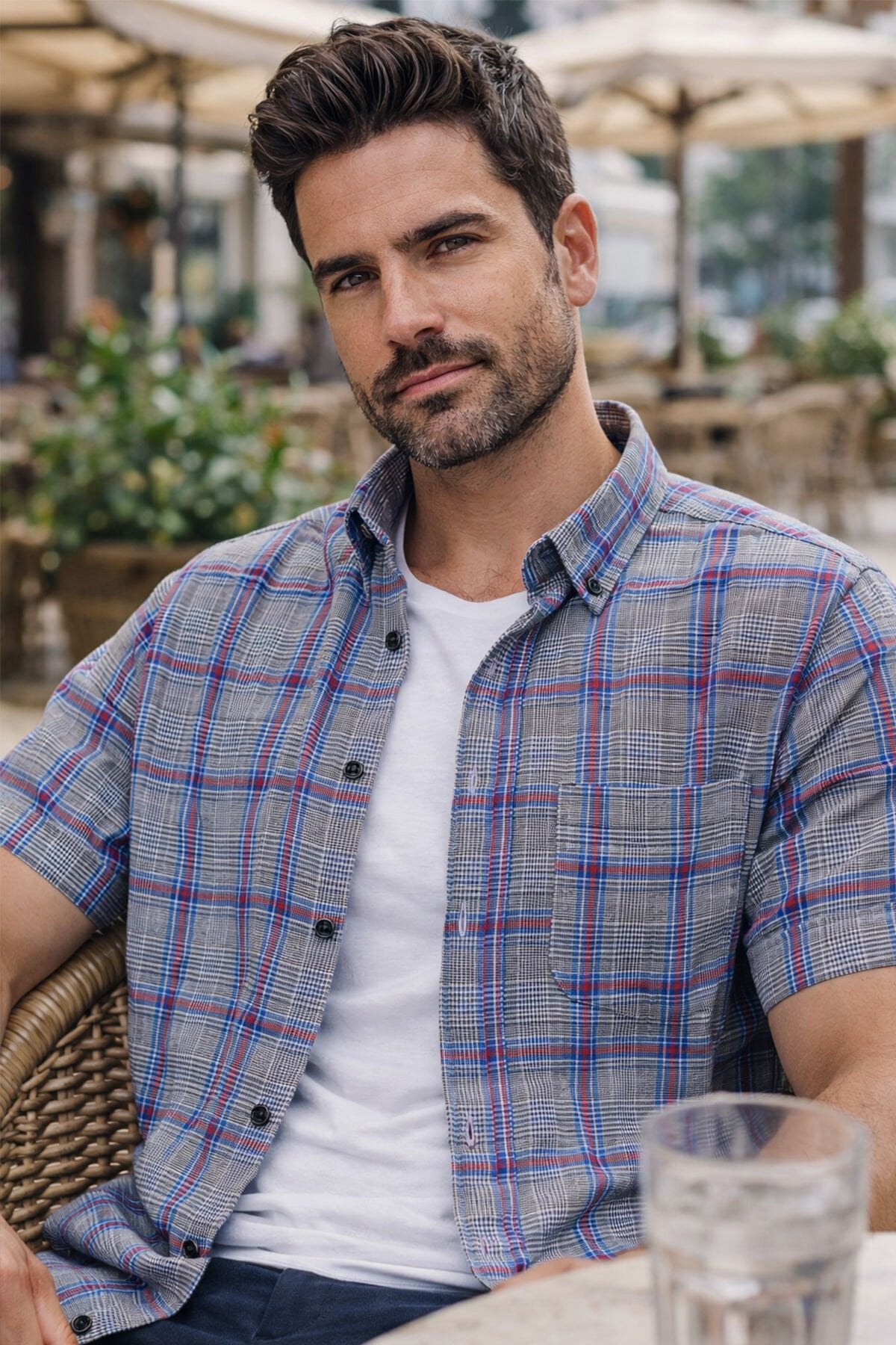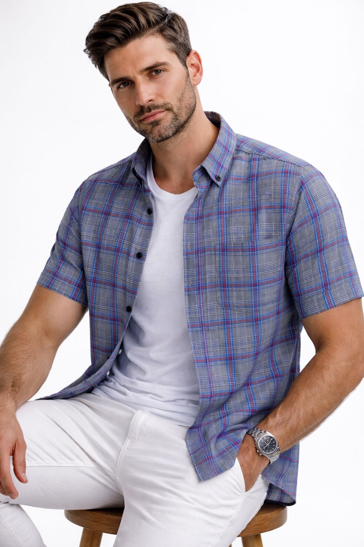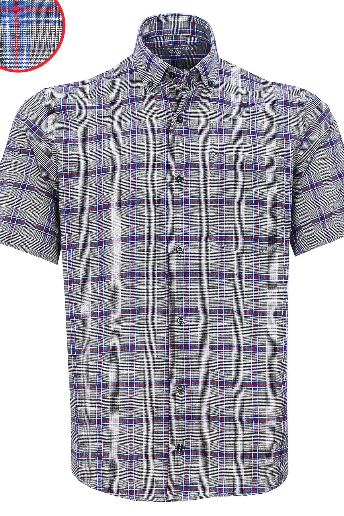 - Yaka düğmeli, kısa kollu tek cepli erkek gömlek