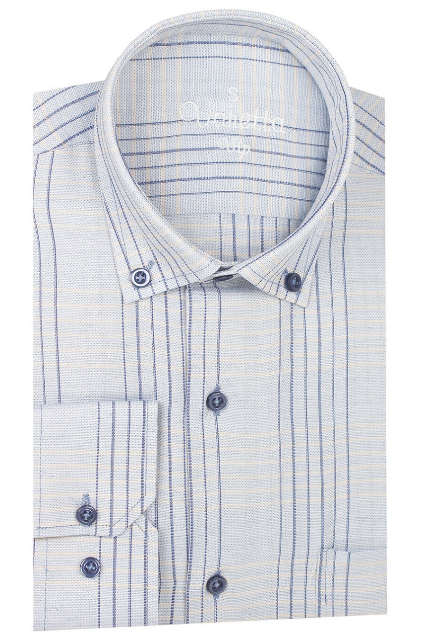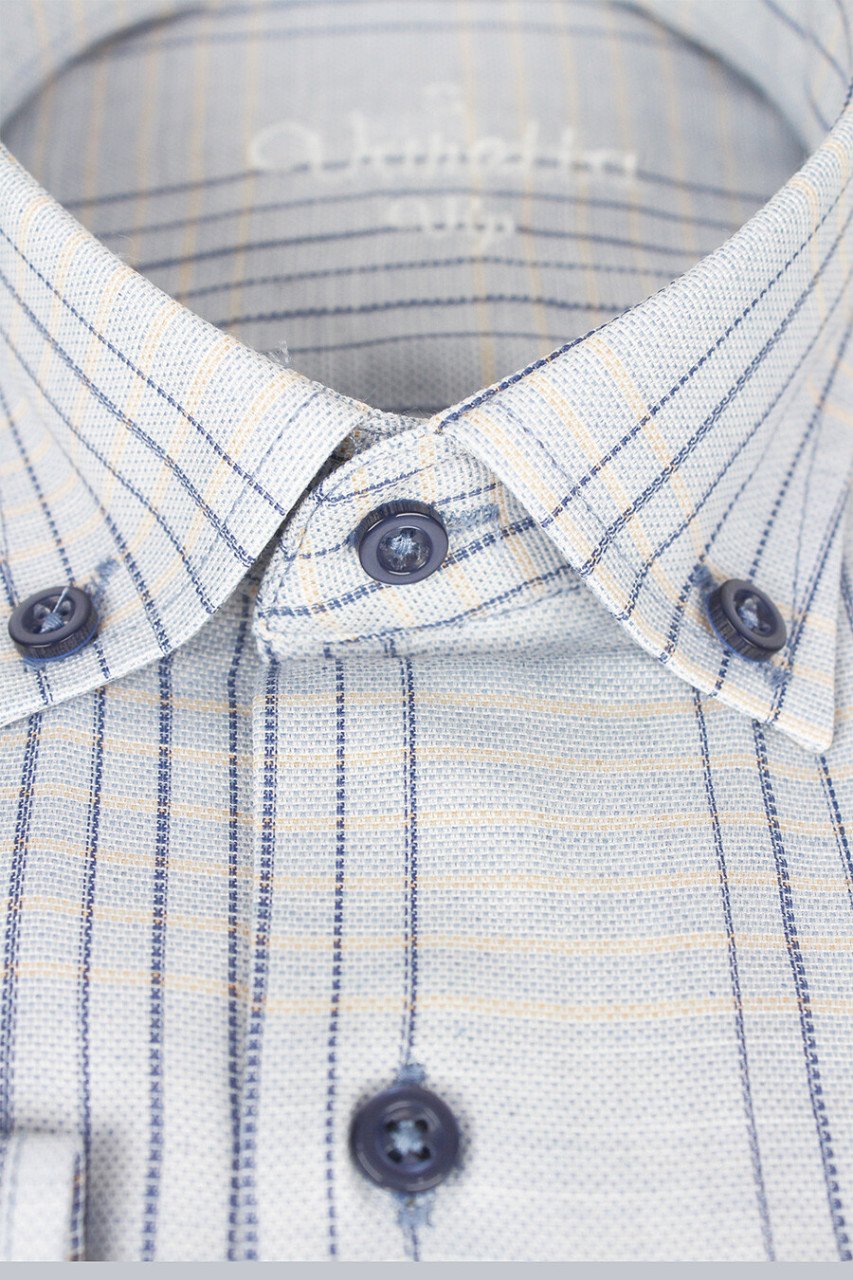 İçerik: Klasik kesim tek cepli; Uzun kollu yaka düğmesiz erkek gömlek; Stüdyo ışığından dolayı ürün 1 ton açık çıkabilir