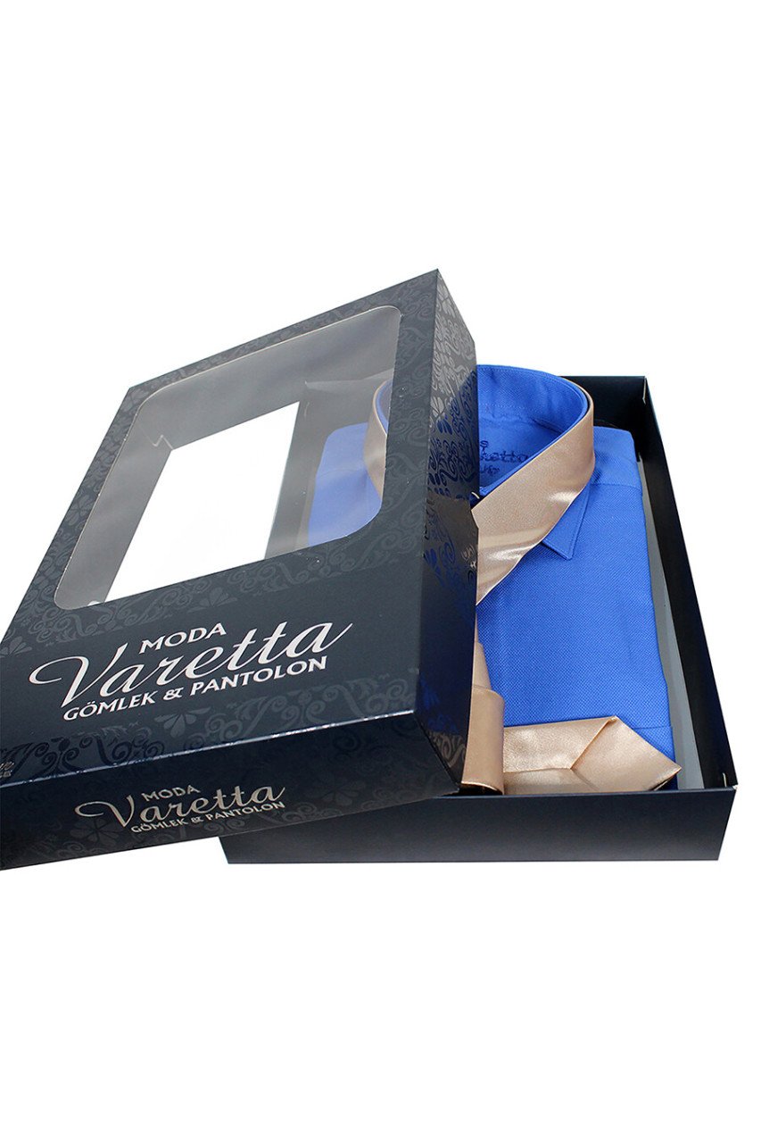 Kutunun içerisinde; 1 Adet gömlek + 1 Adet Kravat + 1 Adet Mendil + 1 Adet Kravat askısı bulunmaktadır.