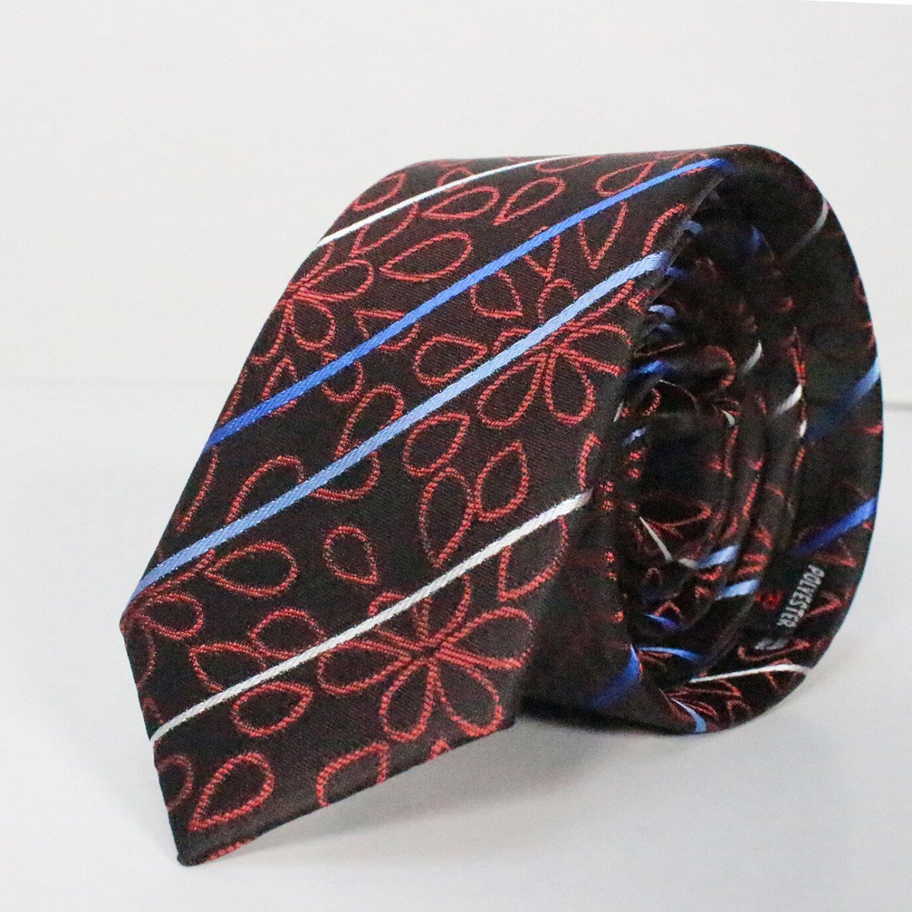 Erkek Siyah Bordo Dar Kesim Desenli Mendilli Kravat