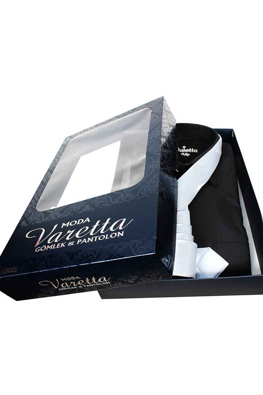 Kutunun içerisinde; 1 Adet gömlek + 1 Adet Kravat + 1 Adet Mendil + 1 Adet Kravat askısı bulunmaktadır.