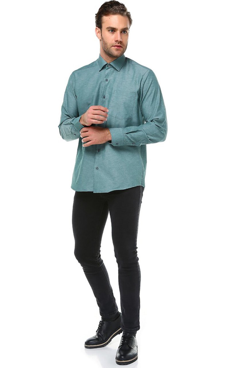İçerik: Klasik kesim tek cepli; Uzun kollu yaka düğmesiz erkek gömlek; Stüdyo ışığından dolayı ürün 1 ton açık çıkabilir