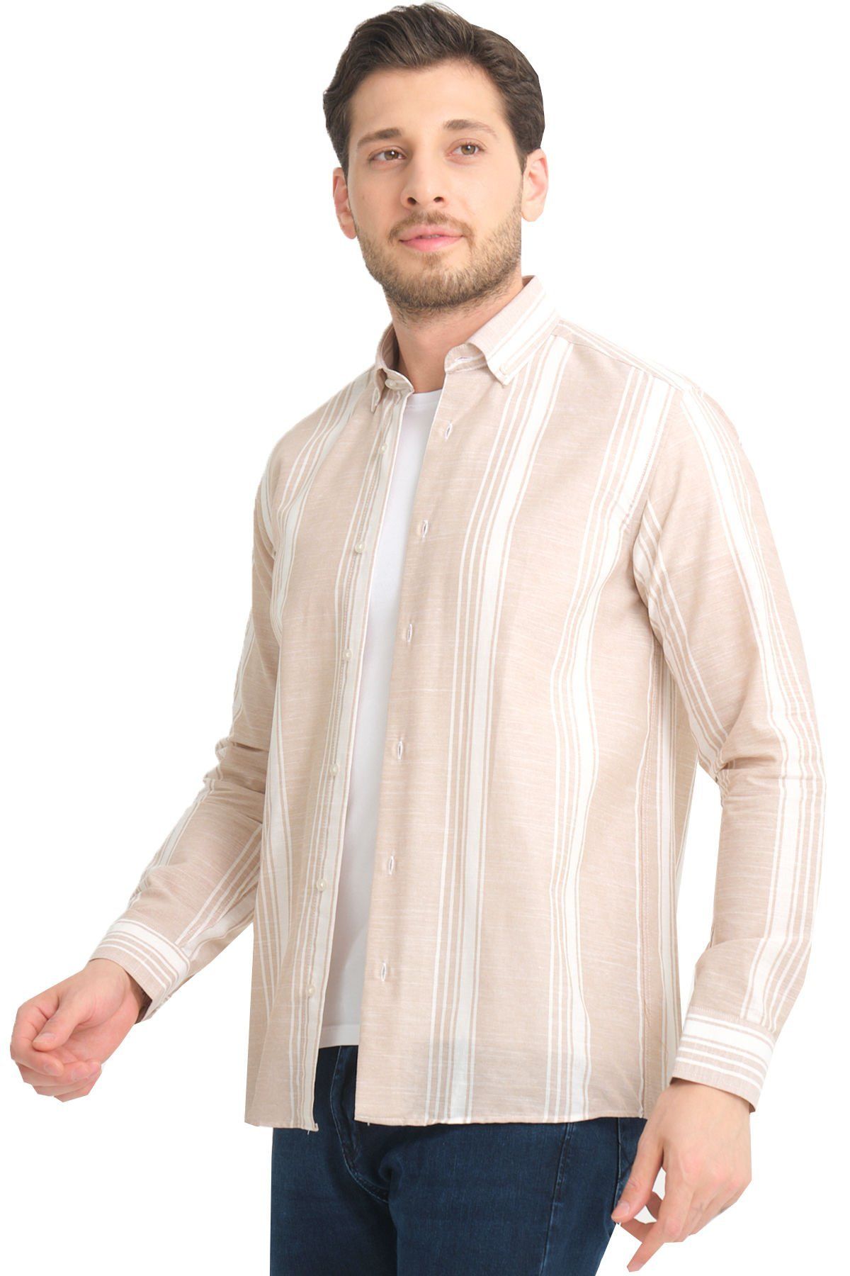 En sağlıklı bilgi için lütfen son görselde ki beden tablomuzu inceleyin. Keten Efektli Cepsiz Uzun Kollu Erkek Gömlek