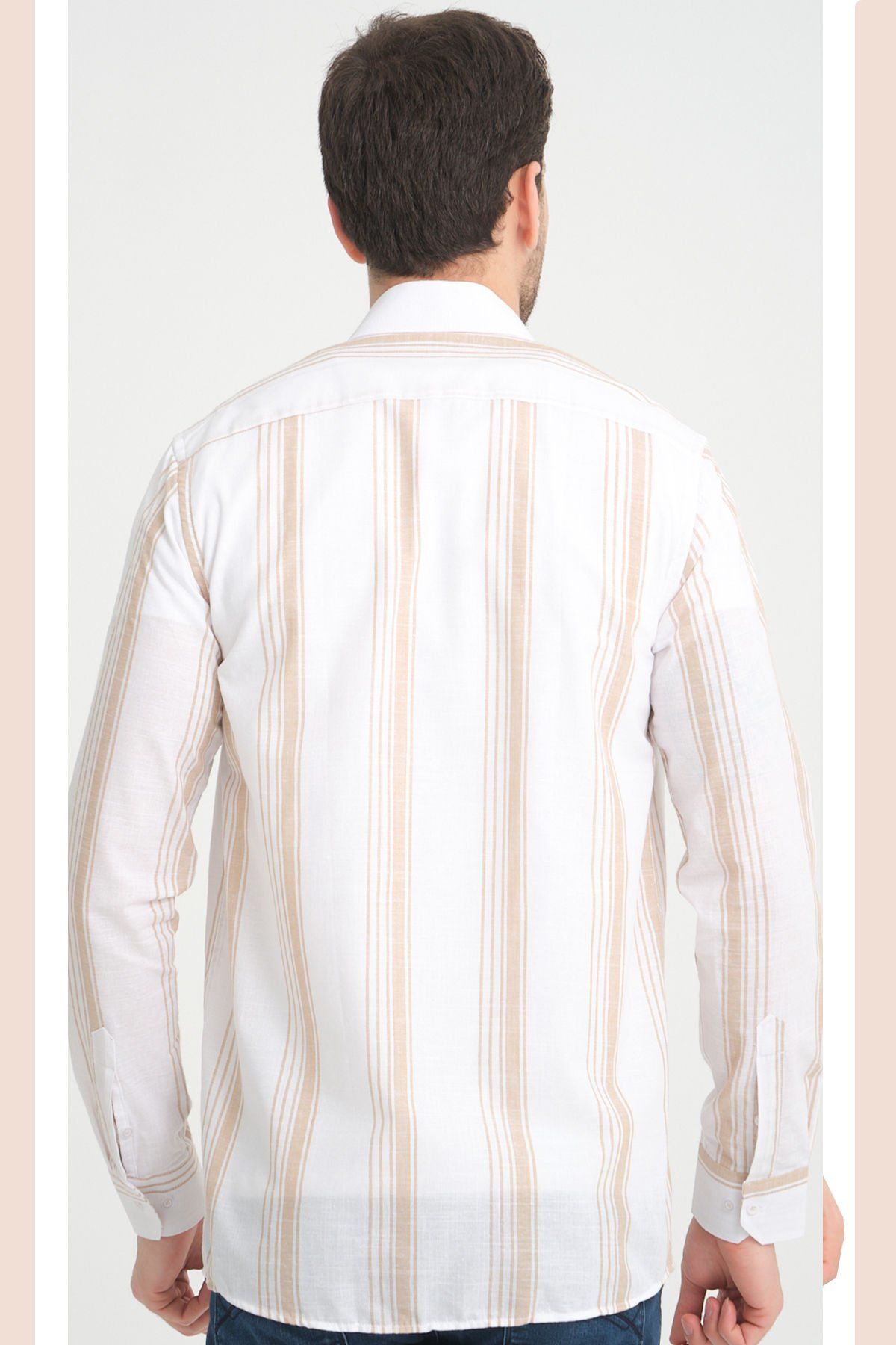 En sağlıklı bilgi için lütfen son görselde ki beden tablomuzu inceleyin. Keten Efektli Cepsiz Uzun Kollu Erkek Gömlek