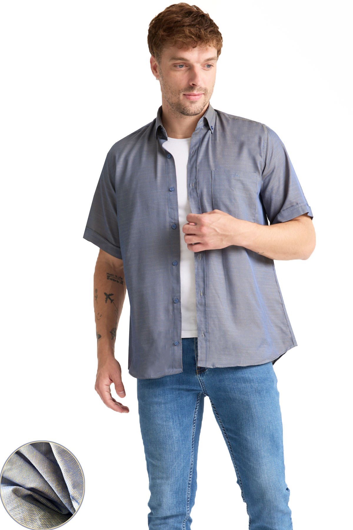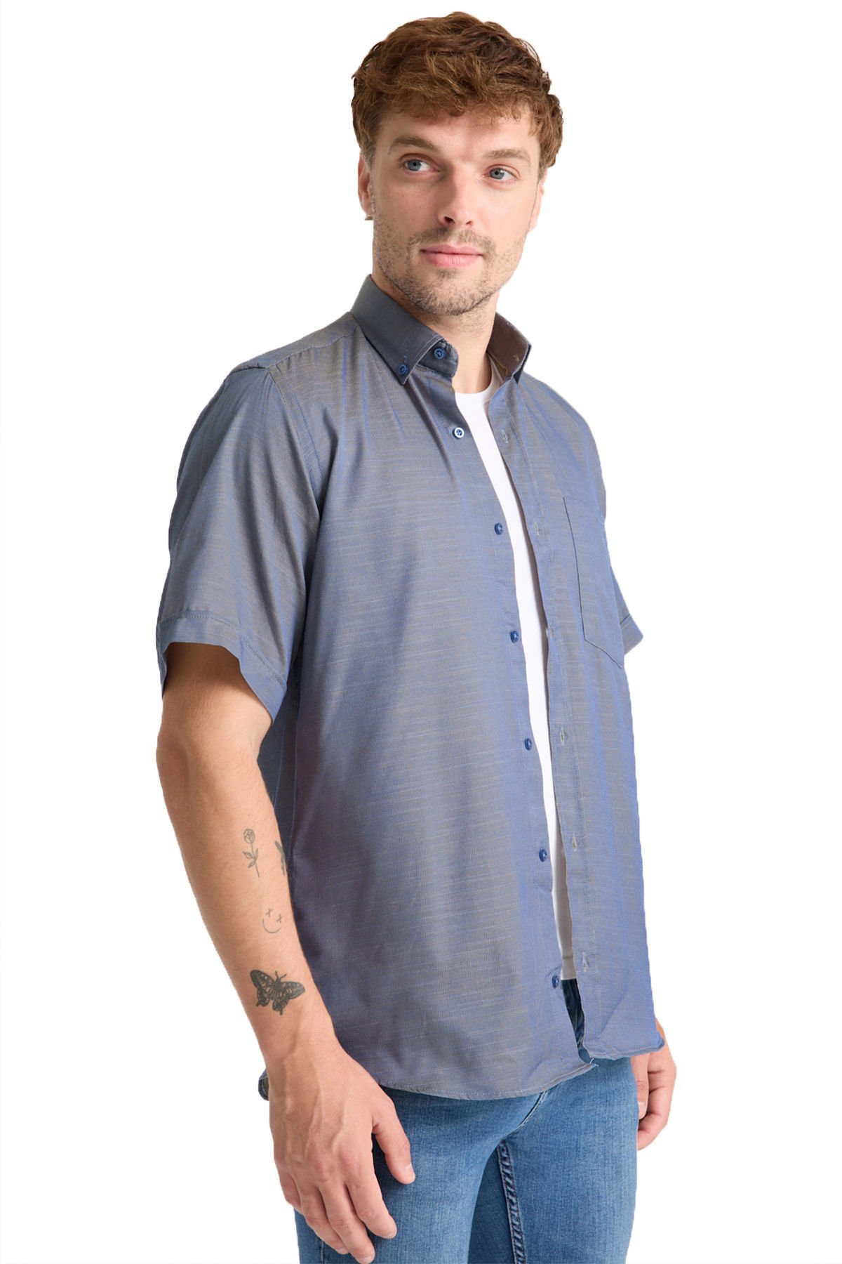 Rahat kesimi ile günlük kullanım için ideal olan bu gömlek, geniş kalıbıyla hareket özgürlüğü sunar.-