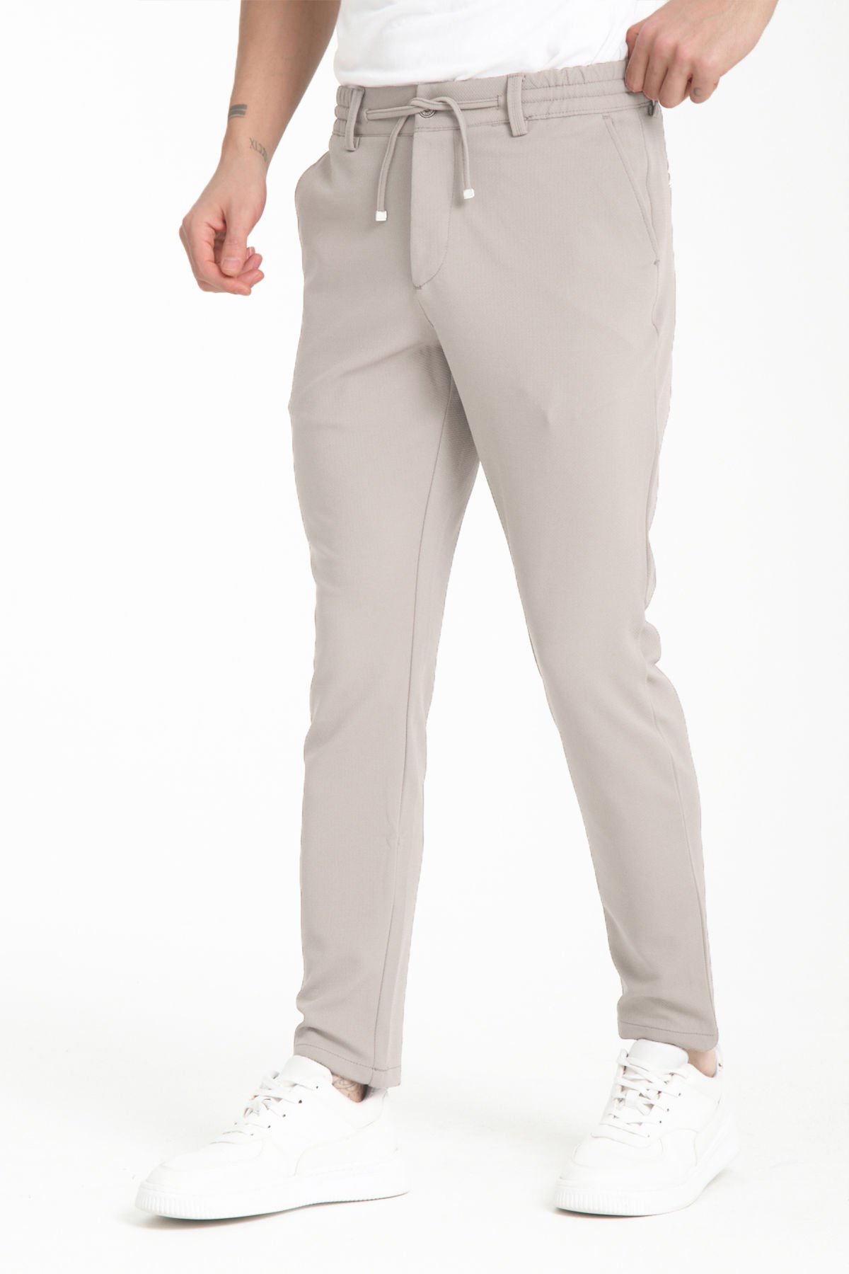 Varetta Erkek Bej Beli Lastikli Cepli Likralı Regular Jogger Pantolon