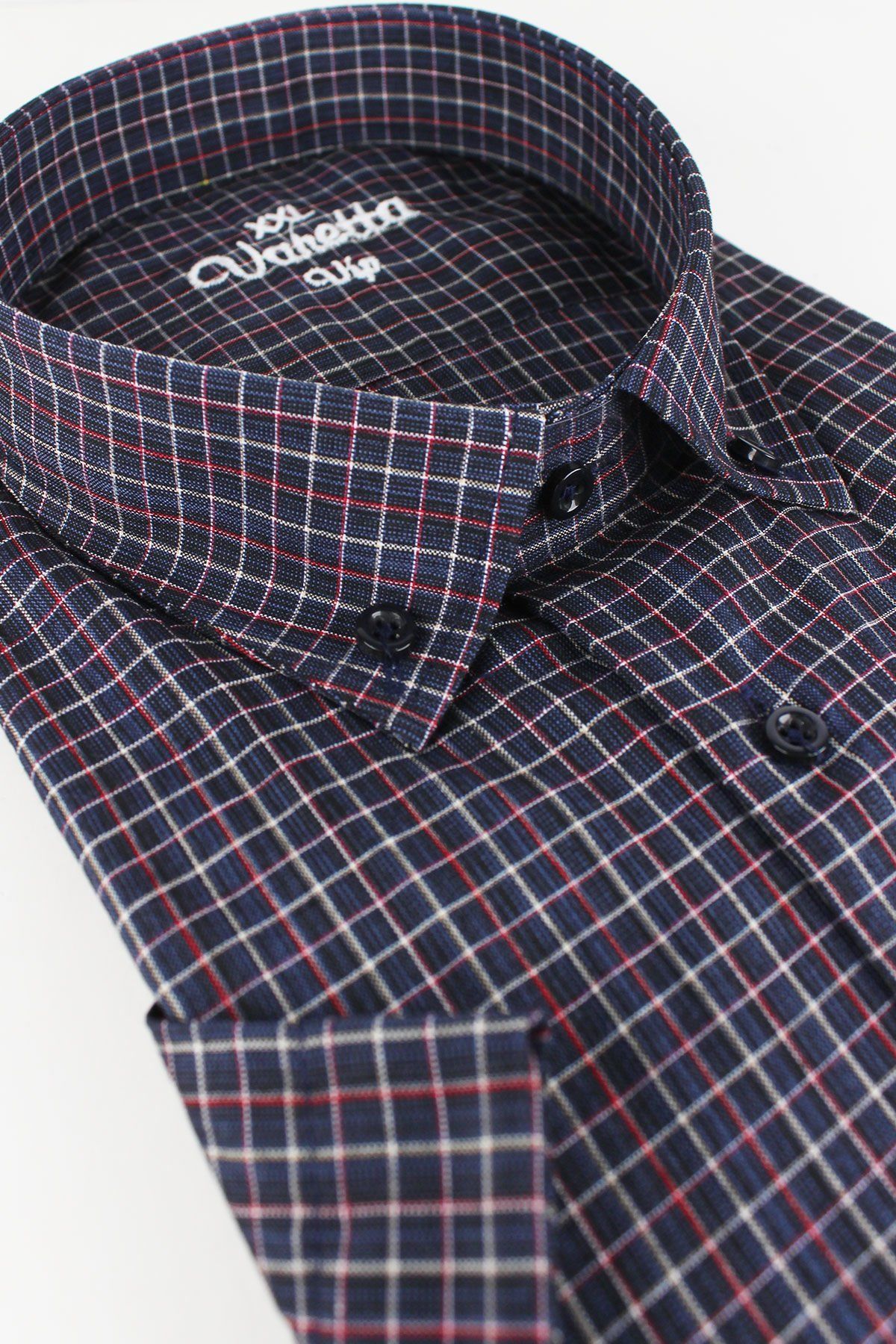 - Yaka düğmeli ve tek cepli kısa kollu büyük beden erkek gömlek