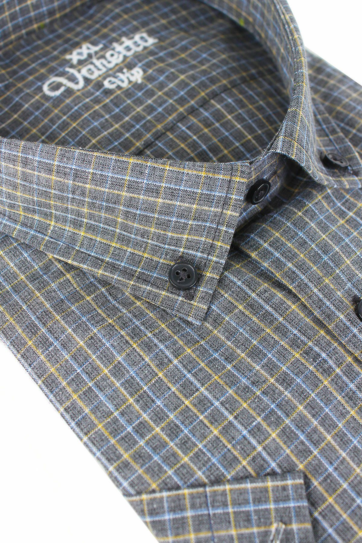 - Yaka düğmeli ve tek cepli kısa kollu büyük beden erkek gömlek