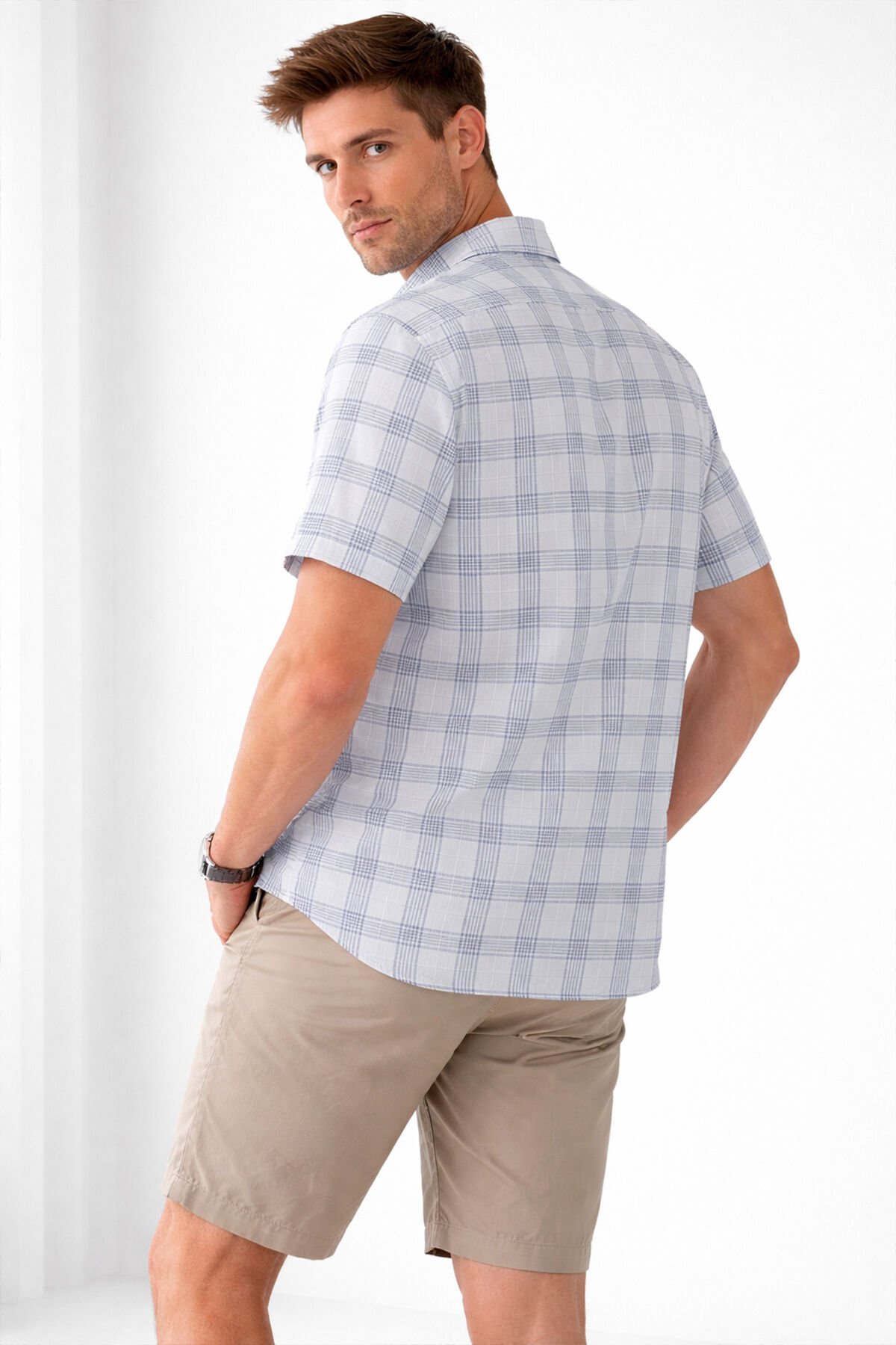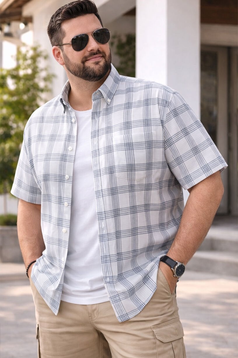 Yaz aylarında konfor ve şıklığı bir arada sunan büyük beden erkek kısa kollu gömlek, modern ekose deseni ve oversize kesimiyle dikkat çeker. Günlük kombinlerden tatil stiline kadar geniş kullanım sunar.