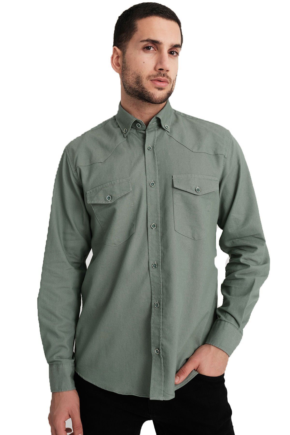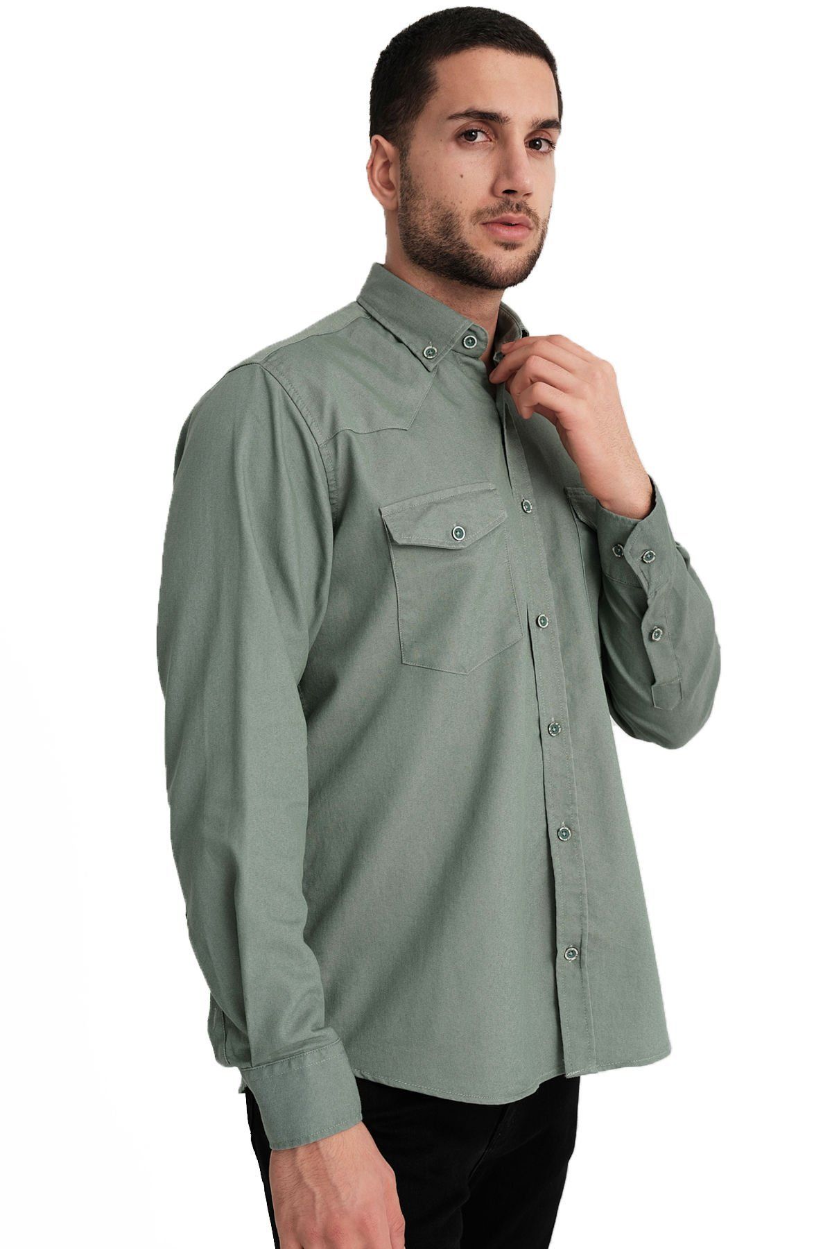 Varetta Erkek Yeşil Lewis Model Gabardin Çift Cepli Kot Gömlek