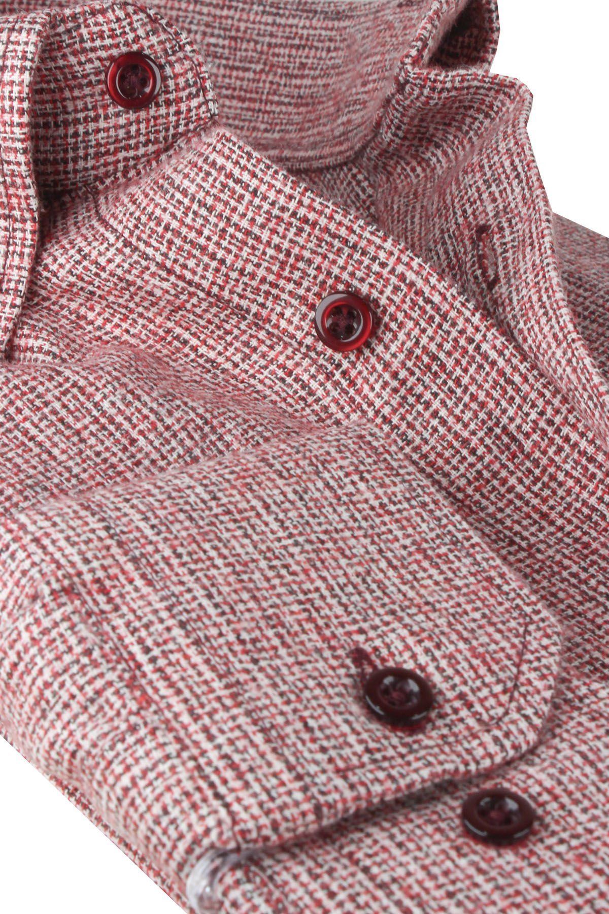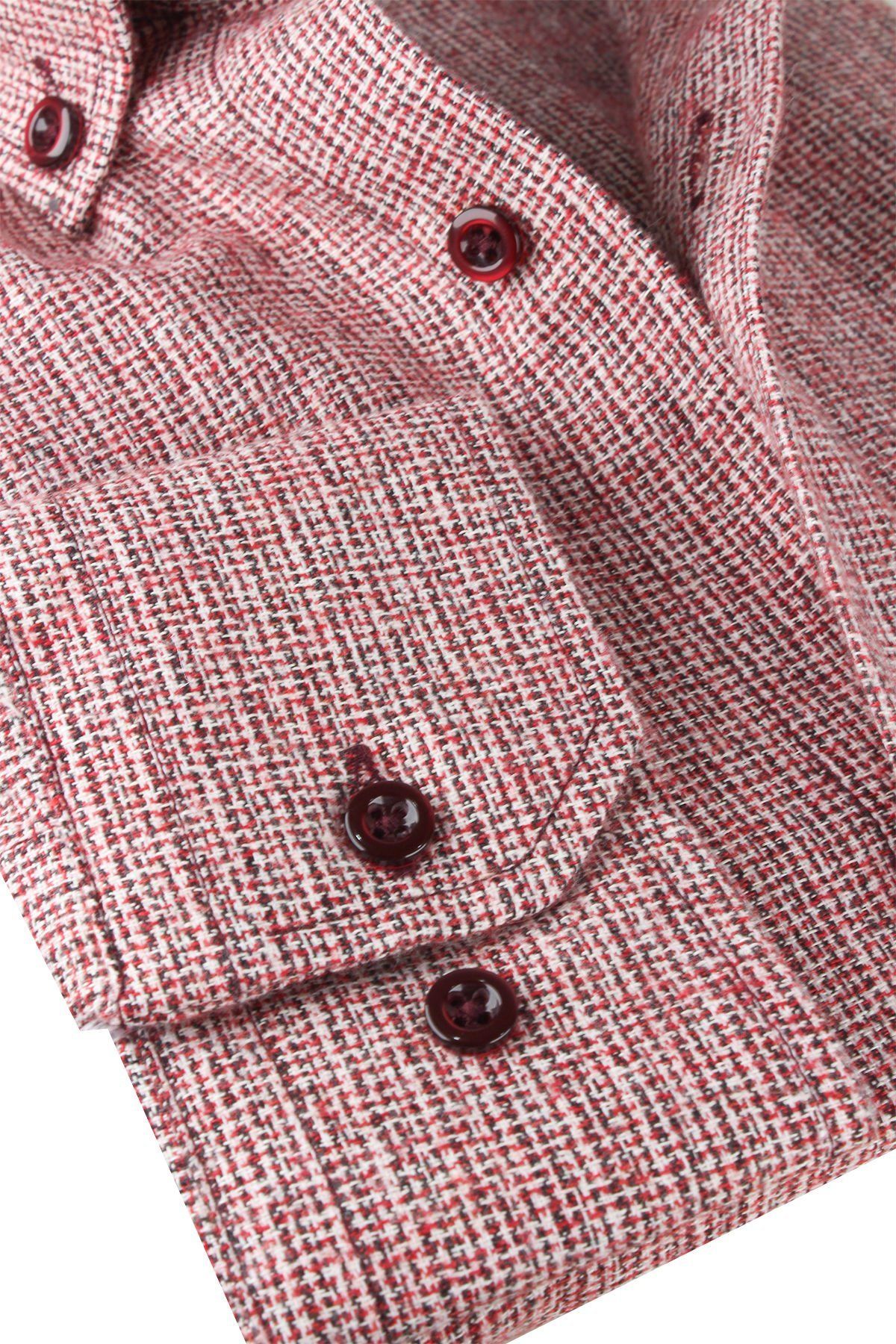 Kış aylarında sıcak tutan ve şık bir görünüm sunan renkli, düz kesim gömlek.