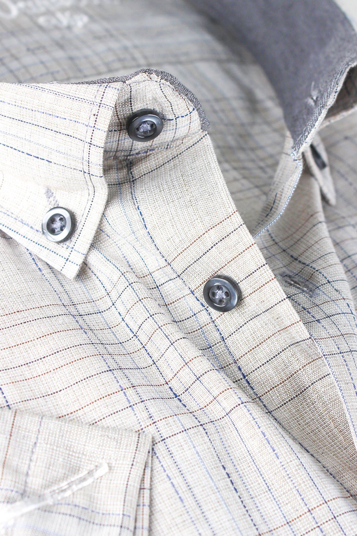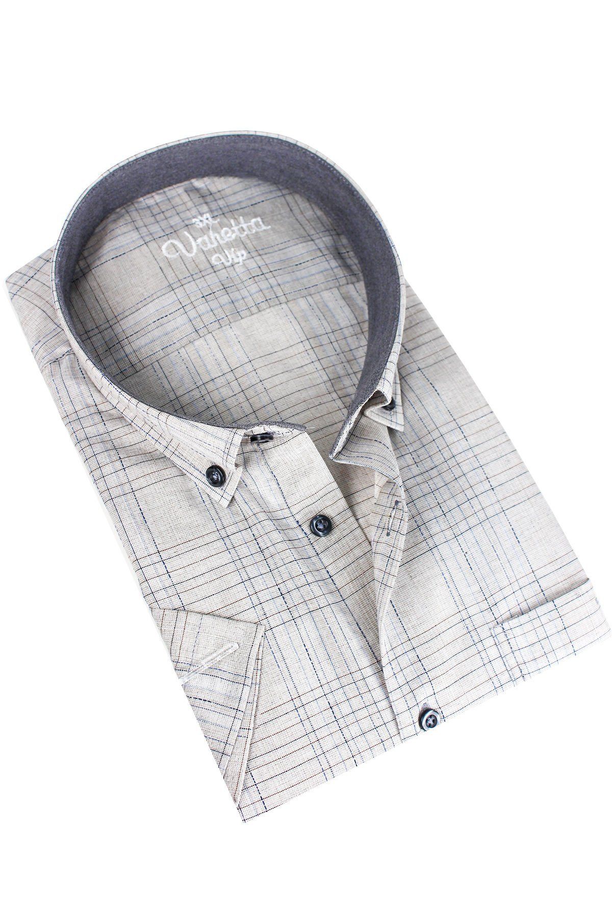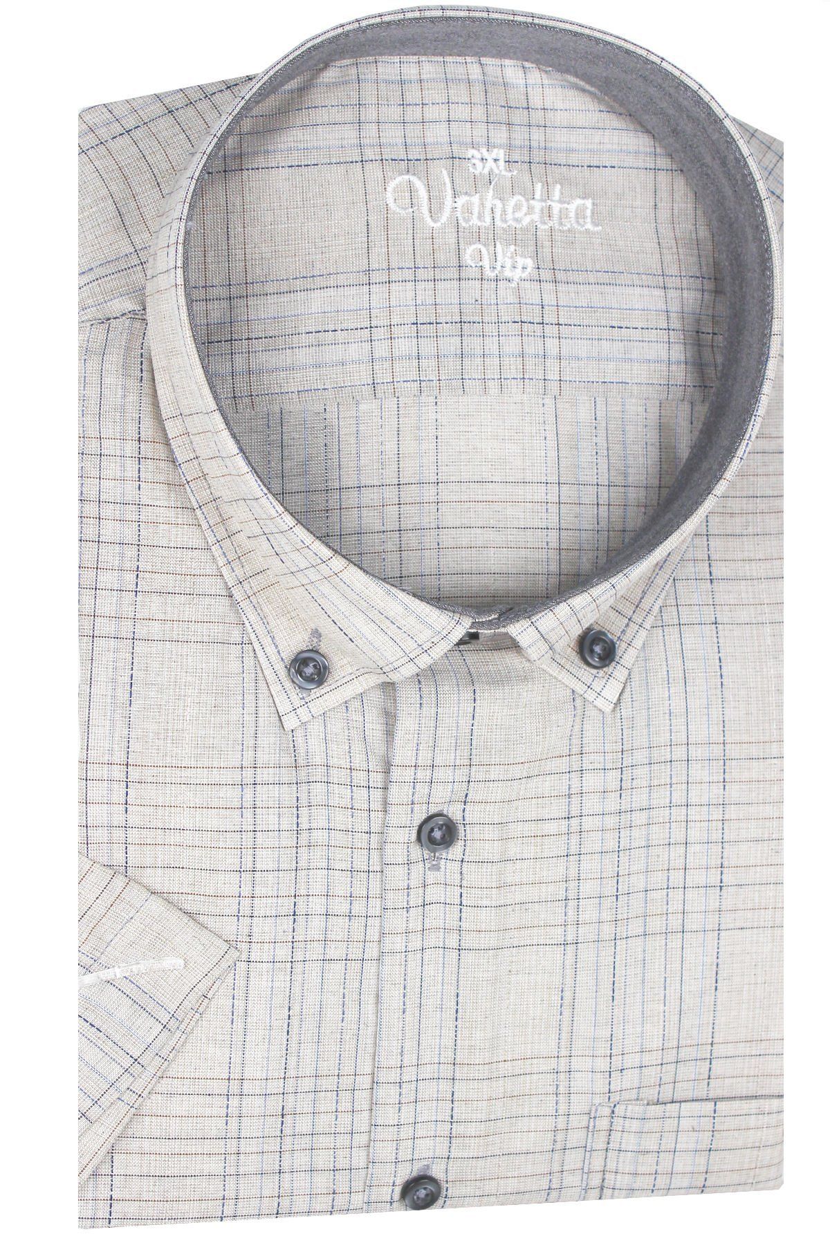 Yaka düğmeli ve tek cepli kısa kollu büyük beden erkek gömlek
