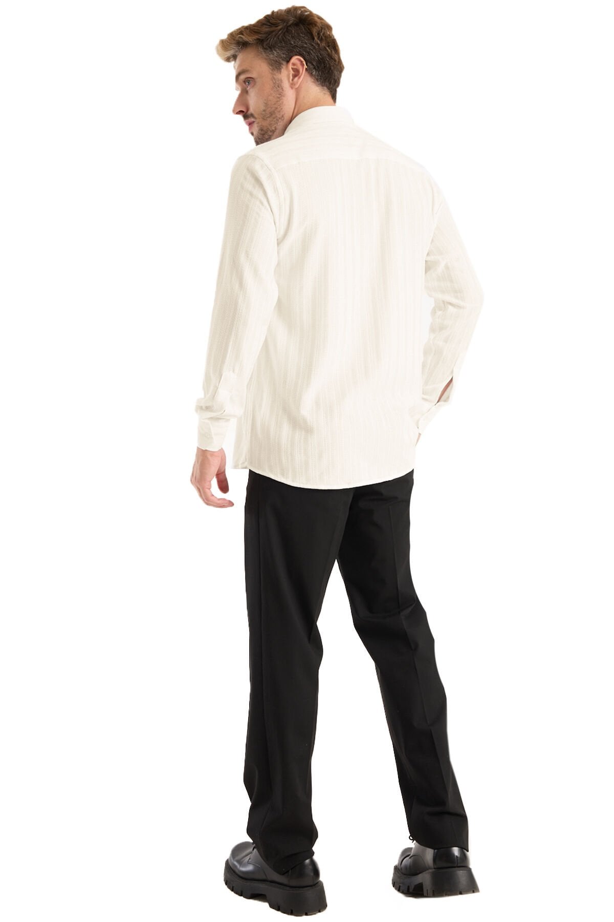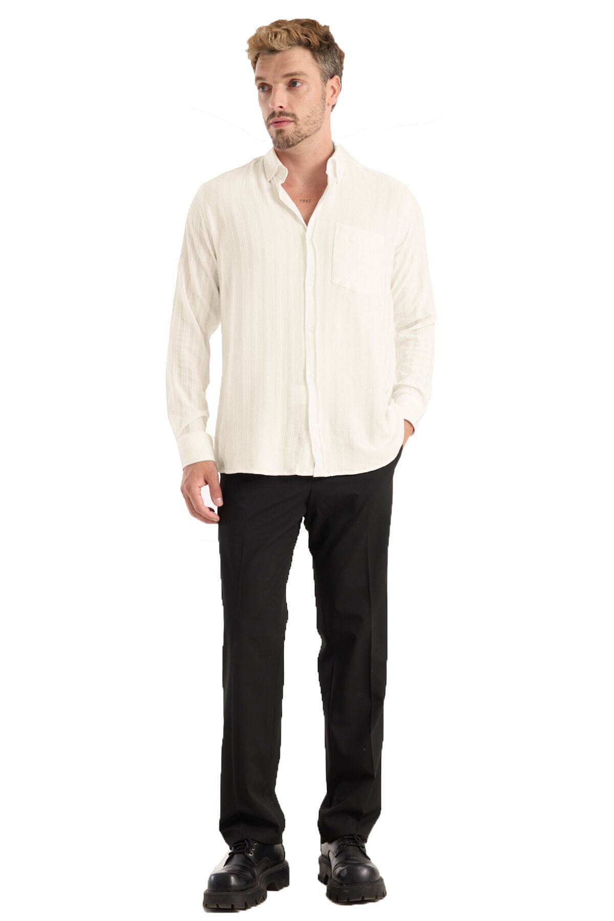 Varetta Erkek Bej Gömlek Likralı Uzun Kollu Cepli Rahat Kalıp Salaş Dökümlü Pamuklu Günlük Şık Model