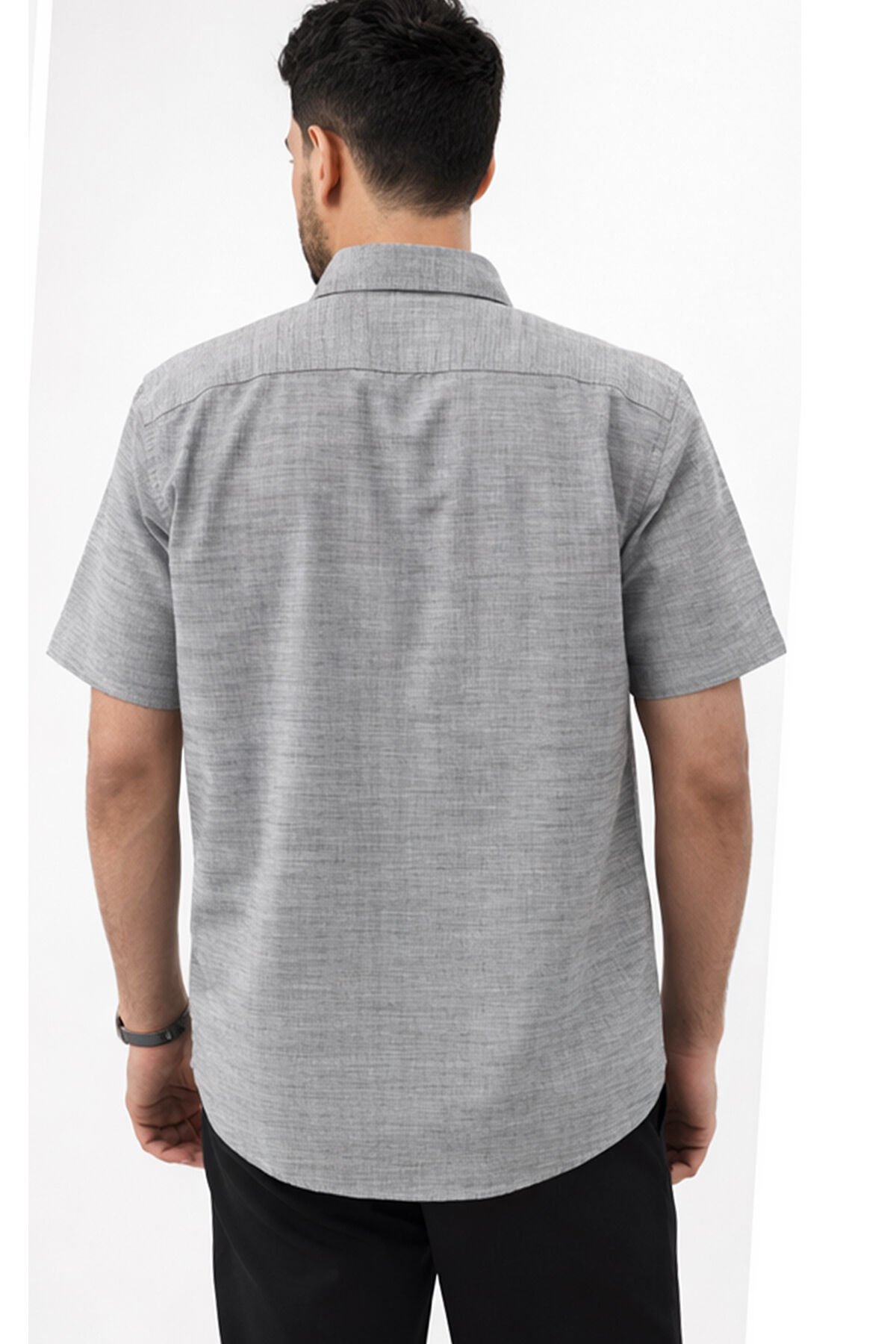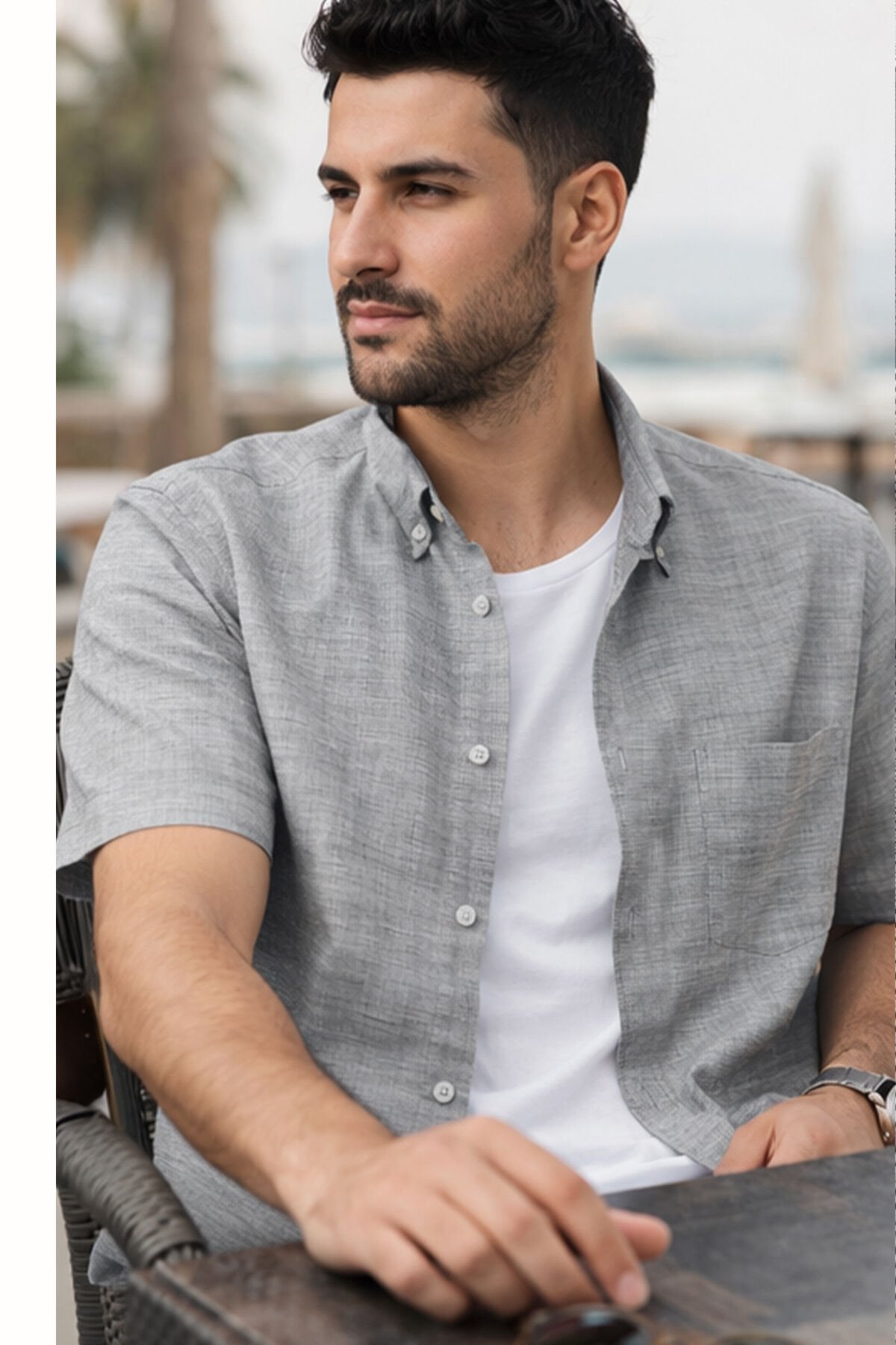Erkek kısa kollu gömlek modelleri arasında modern tasarımıyla öne çıkan bu gri gömlek, yaz aylarında hem şık hem de rahat bir stil sunar.
