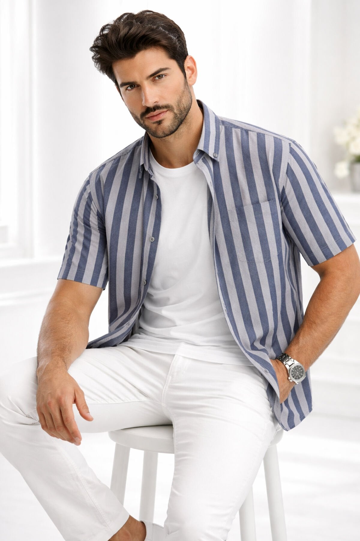 Yaz aylarında hem şık hem de rahat görünmek isteyen erkekler için tasarlanmış kısa kollu gömlek, modern ve zamansız bir stil sunar. Mikro dokulu kumaşı sayesinde sade ama kaliteli bir görünüm oluşturur.