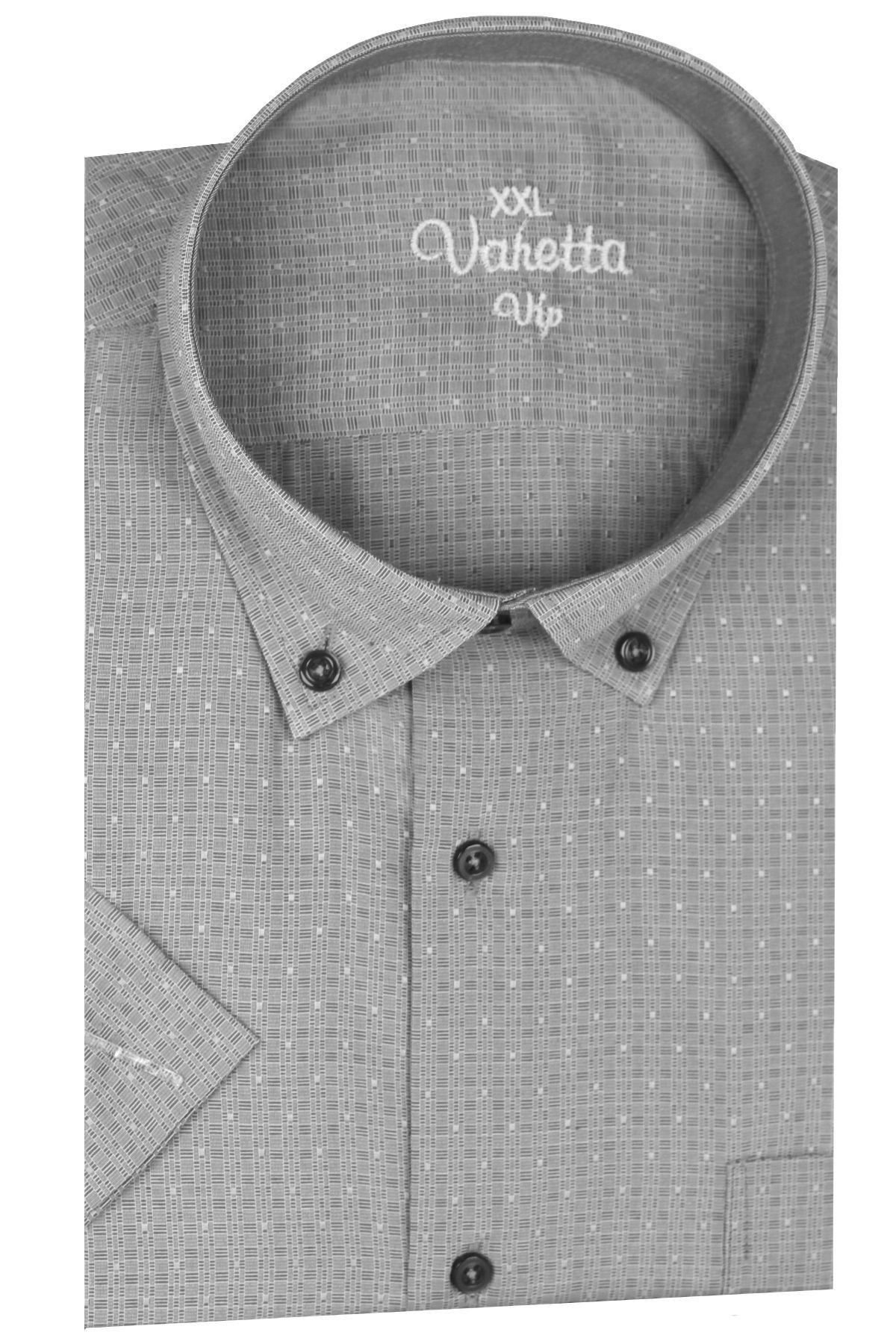 Yaka düğmeli ve tek cepli kısa kollu büyük beden erkek gömlek