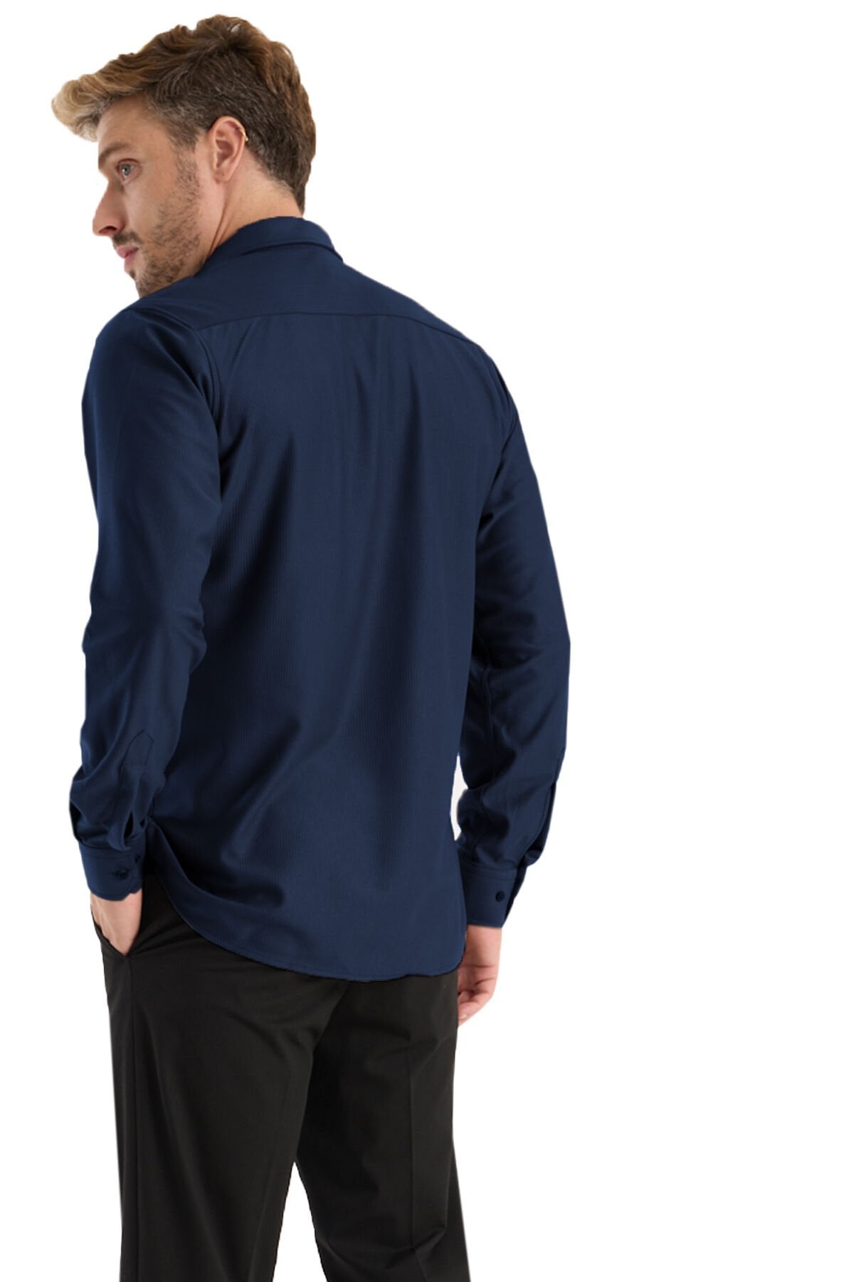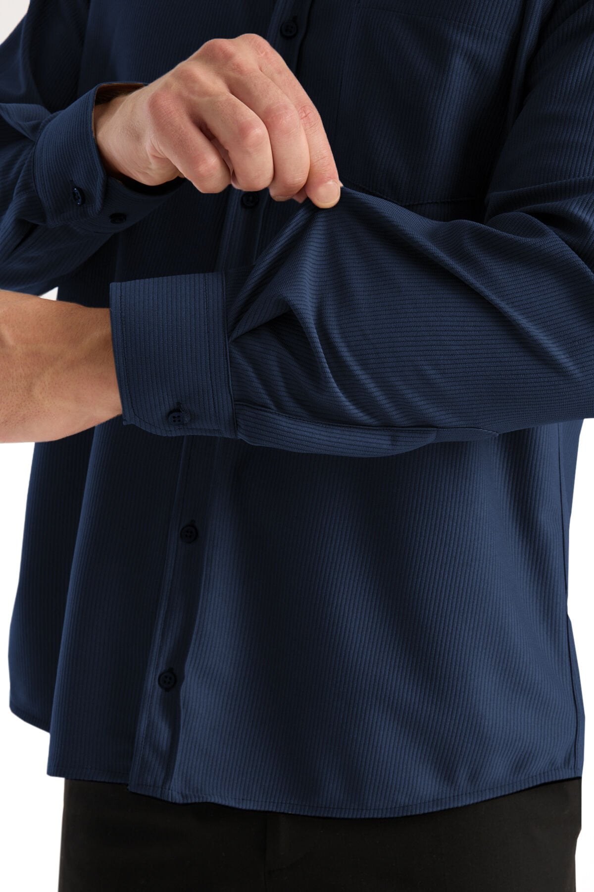 Varetta Erkek Lacivert Gömlek Likralı Uzun Kollu Cepli Rahat Kalıp Salaş Dökümlü Pamuklu Günlük Şık Model