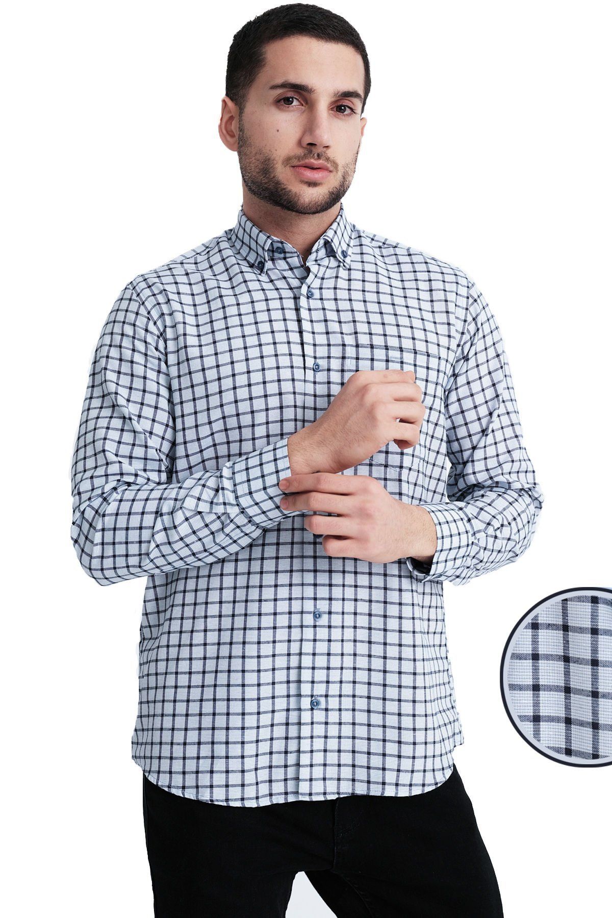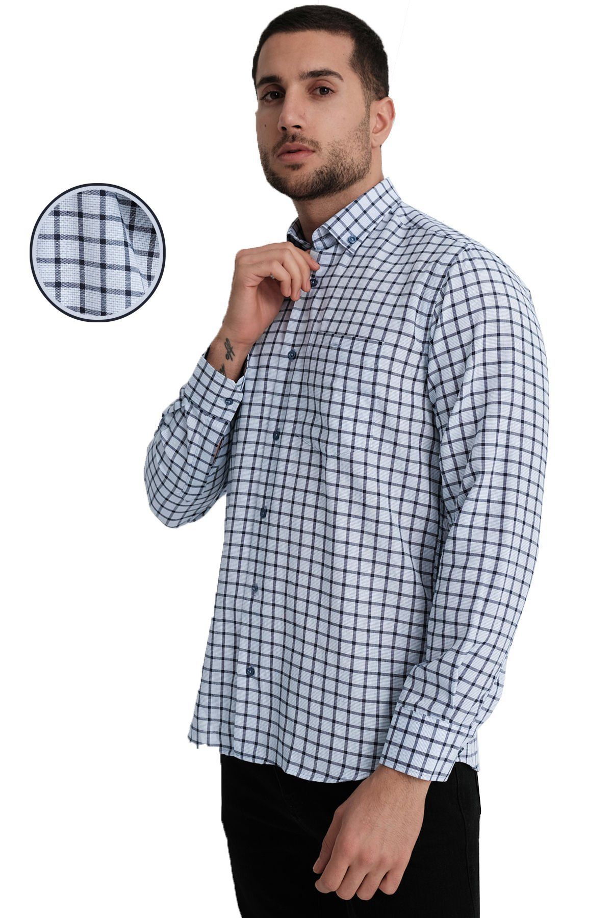 Ürün klasik (Rahat,geniş) kesimdir; •Ortalama 1.75 boy için 75-85 kg arası S beden; 85-95 kg arası M beden; 95-105 kg arası L beden, 105-110 kg arası XL beden tercih ediniz. ; Manken bedenin üzerindeki ürün S bedendir. Manken ölçüsü: boy 1.90 - kilo 80 - bel 84 - basen 92- ; •En sağlıklı bilgi için lütfen son görseldeki beden tablomuzu inceleyin veya bize mağazaya sor kısmından boy kilo göbek çevresi ölçünüzü yazın .; •Yaka düğmeli Tek Cepli uzun kollu erkek gömlek ; •Ürün İçeriği: %67 Pamuk %33 Poliester ; •Stüdyo ışığı kaynaklı ürün renkleri bir ton açık/koyu görünebilir en doğru renk için lütfen ekran parlaklık ayarları ile oynamayın ve ürünün tüm görsel ve videolarını izleyin. ; Made in Türkiye ; Kolay ütülenir.