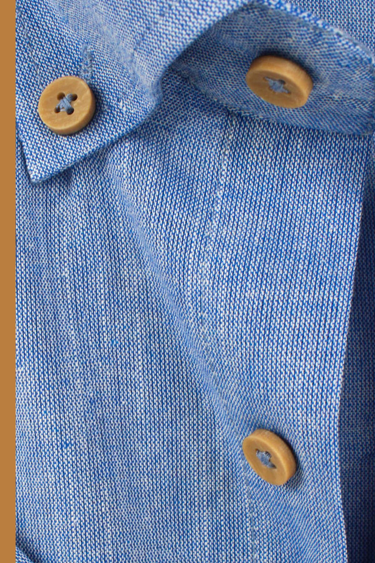 Varetta Erkek Mavi Keten Gömlek | %100 Pamuk, Uzun Kollu, Geniş Kesim, Tek Cepli