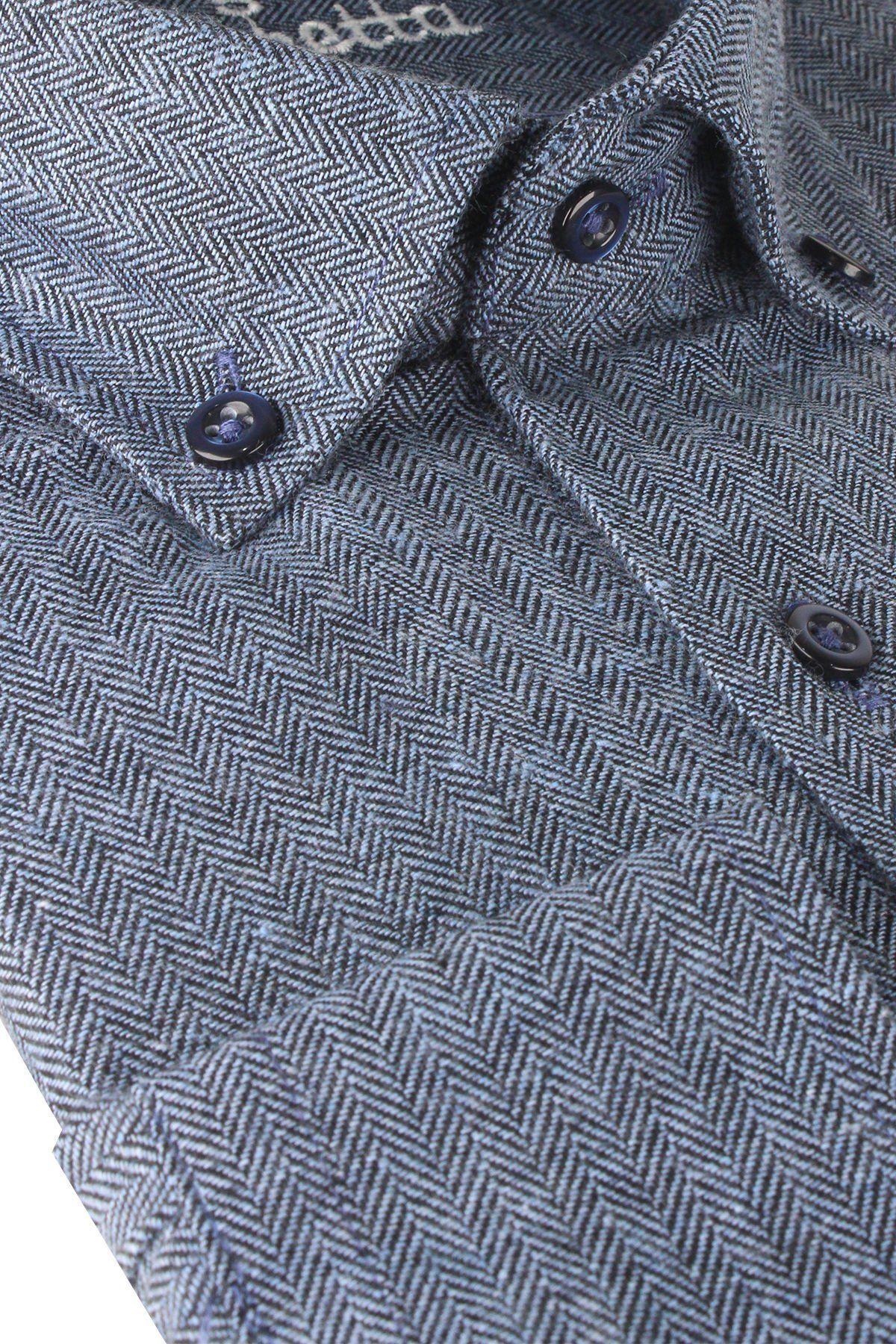 Kış aylarında sıcak tutan ve şık bir görünüm sunan renkli, düz kesim gömlek.