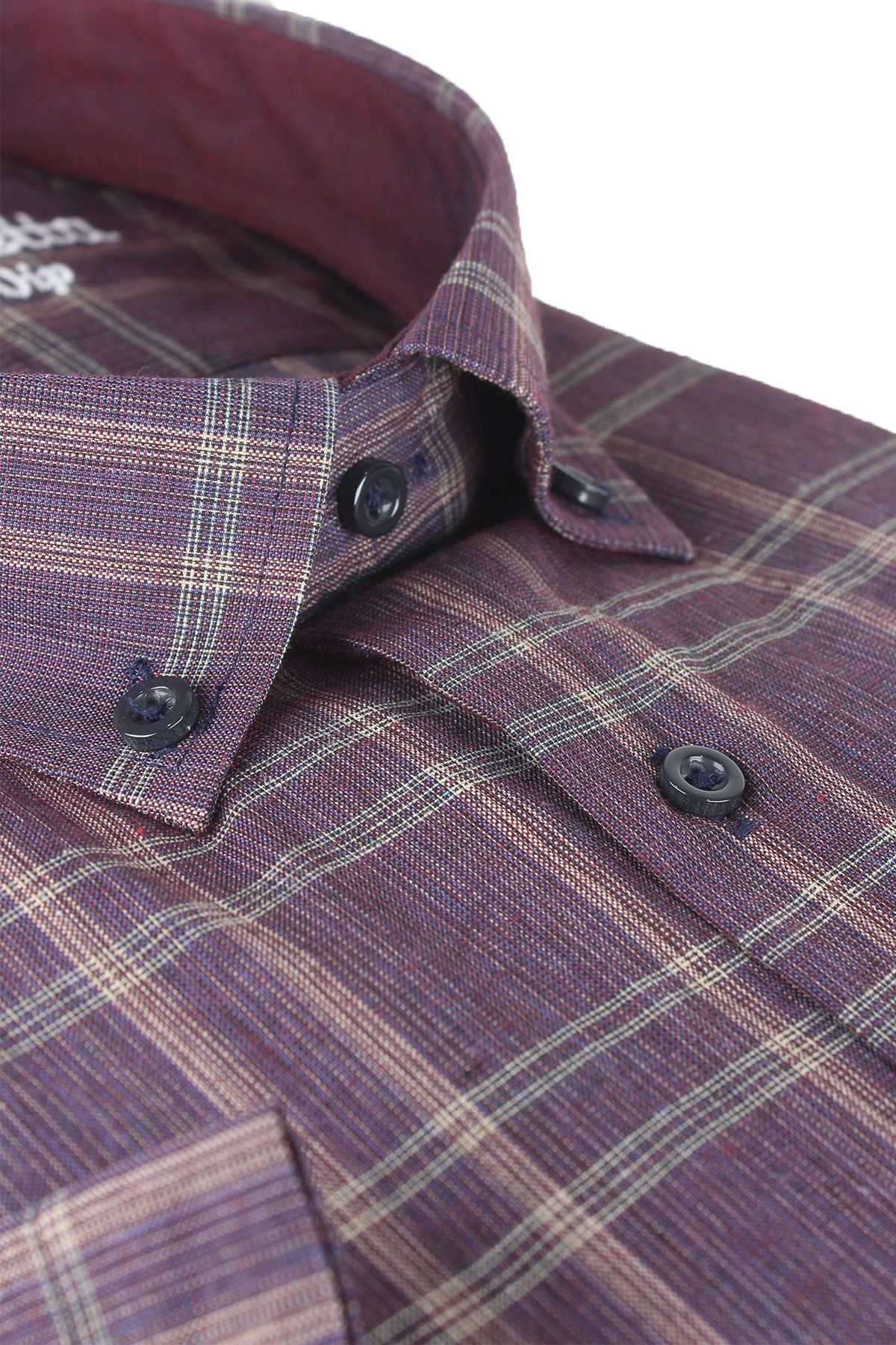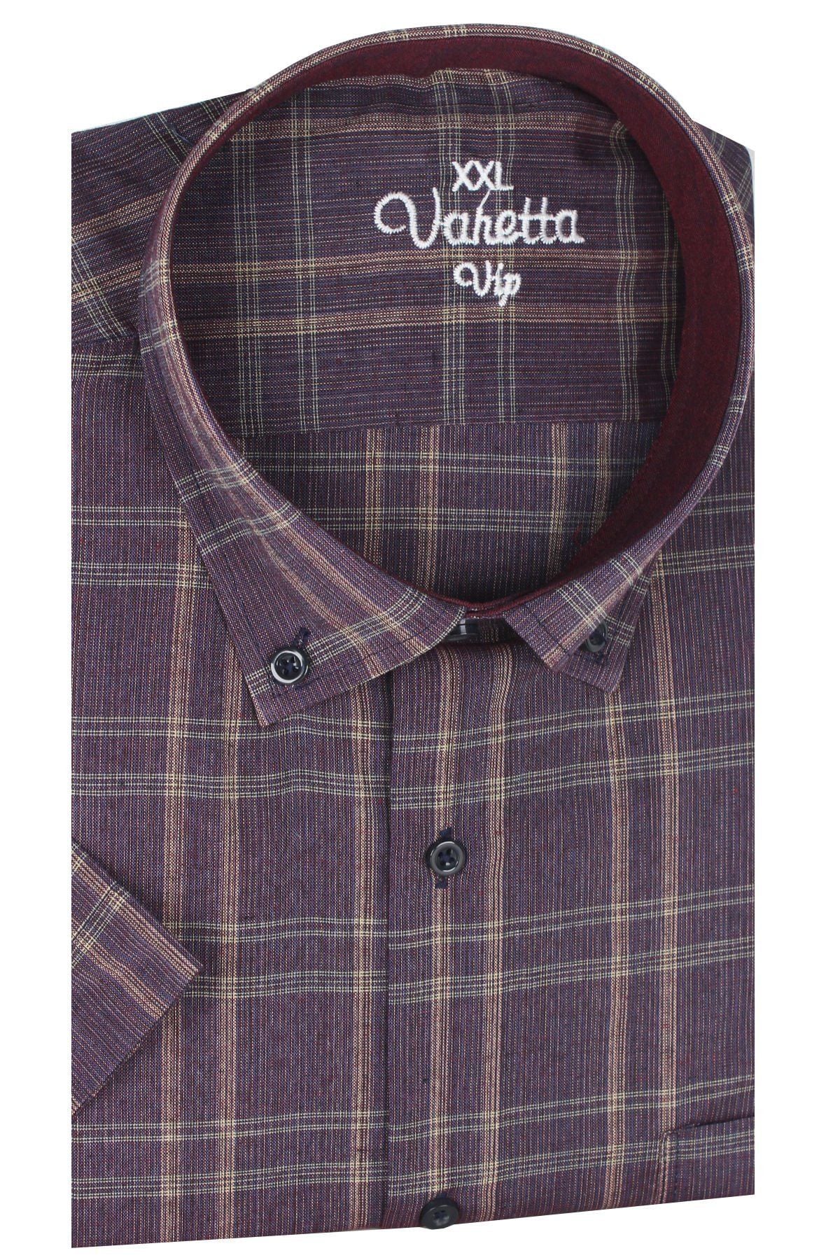 Yaka düğmeli ve tek cepli kısa kollu büyük beden erkek gömlek