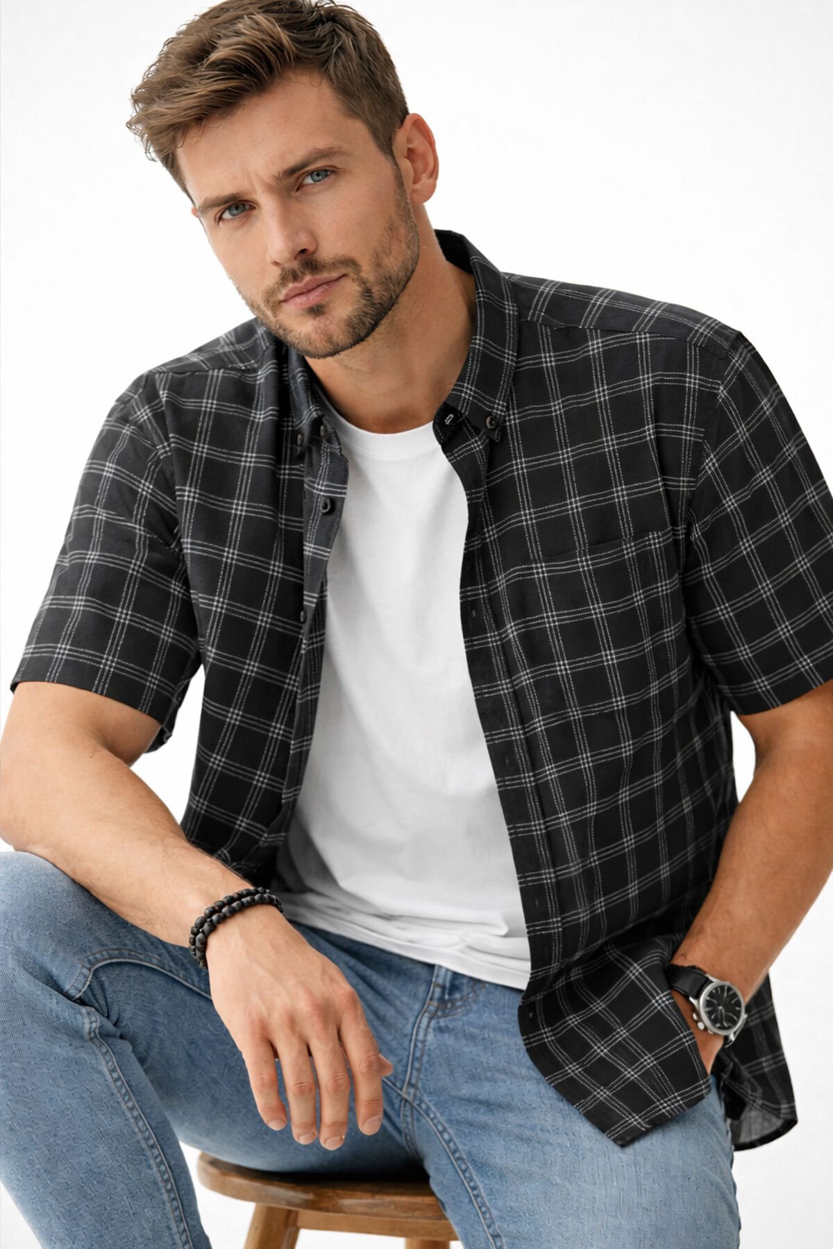 Yaz aylarında konfor ve şıklığı bir arada sunan büyük beden er'kek kısa kollu gömlek, modern ekose deseni ve oversize kesimiyle dikkat çeker. Günlük kombinlerden tatil stiline kadar geniş kullanım sunar.