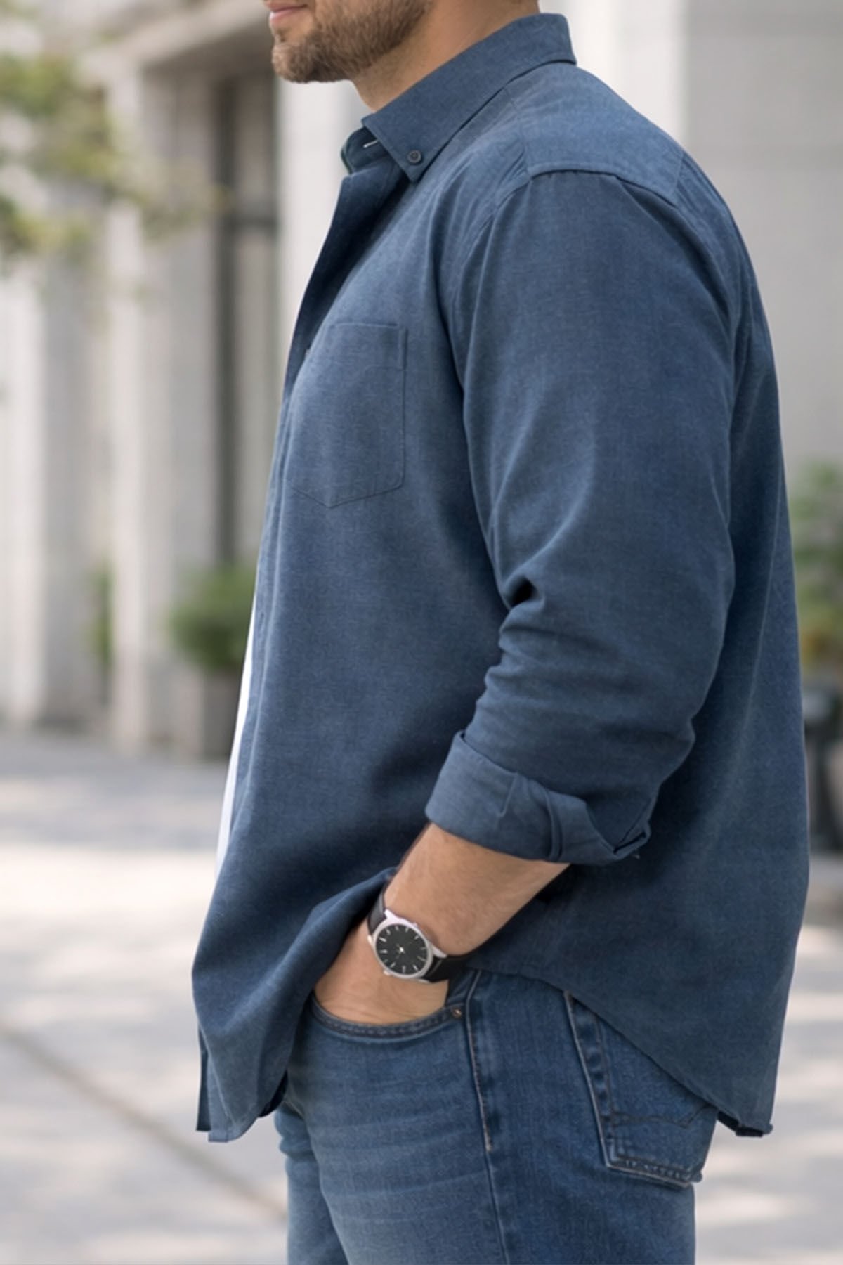- uzun kollu ve tek cepli