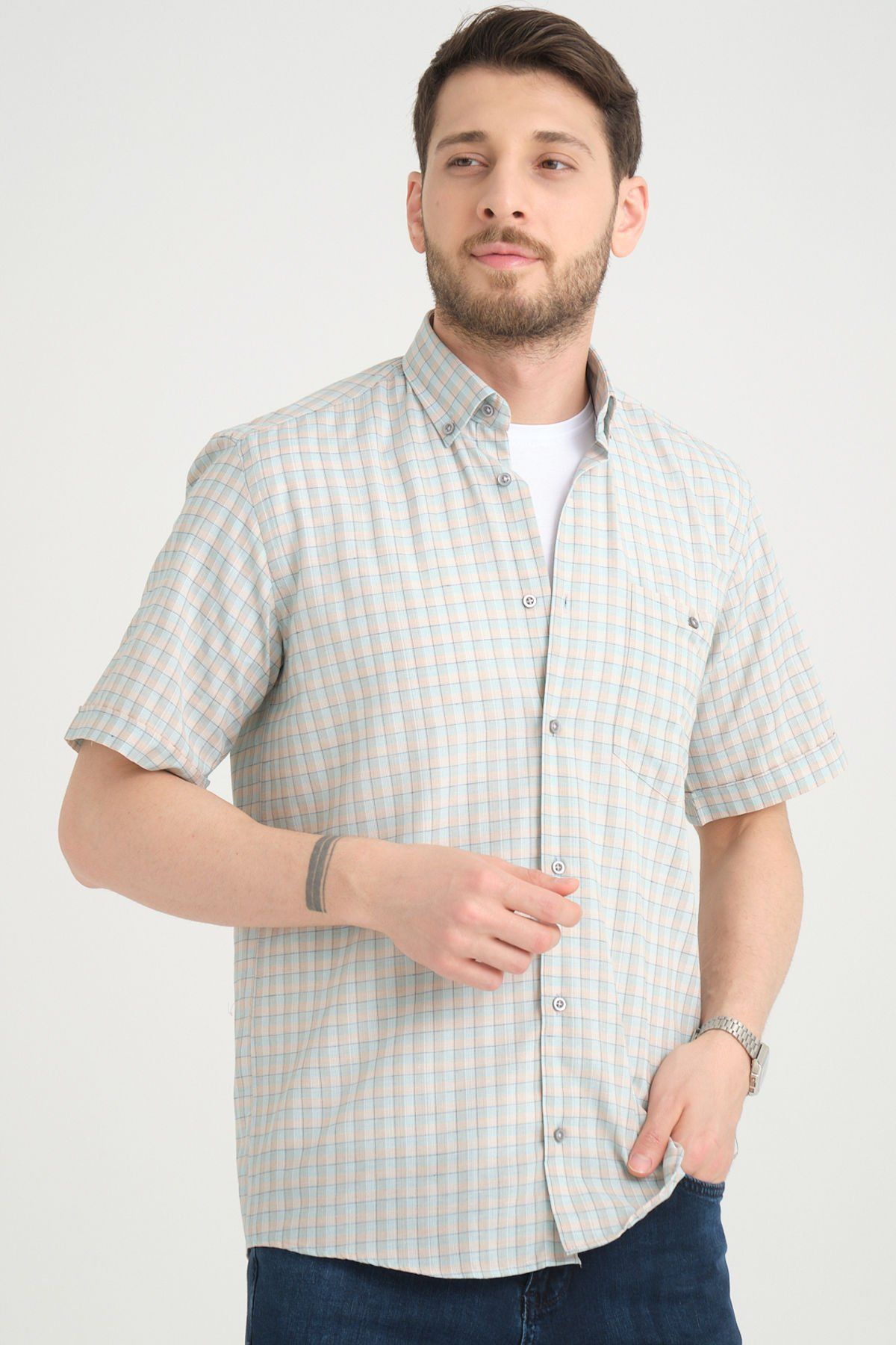 Sıcak yaz günlerinde tarzınızı ön plana çıkarın! Varetta'nın kısa kollu kareli cepli yazlık gömleği ile rahatlığı ve şıklığı bir arada yaşayın.