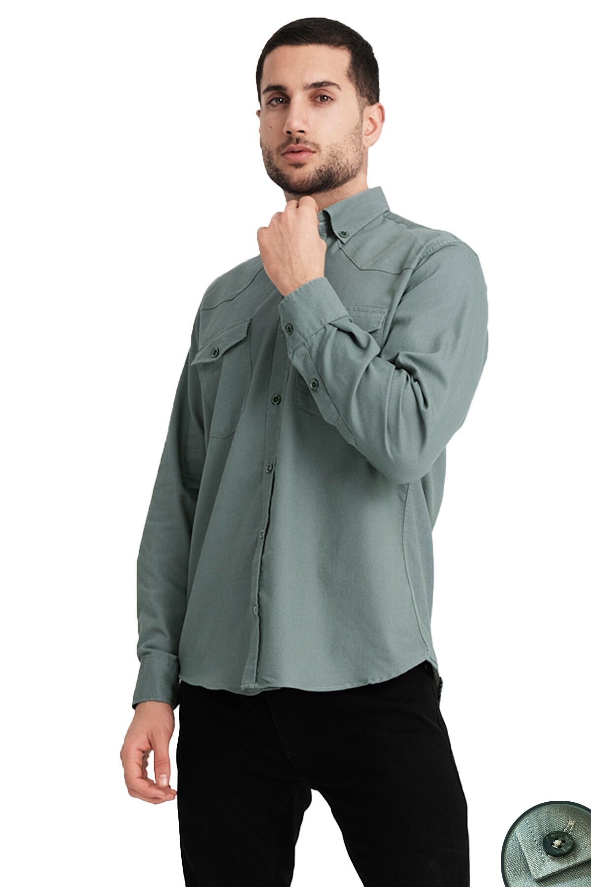 Pantone’un Nane Esintisi Yeşili tonlarından ilham alınarak hazırlanan özel rengi, klasik kot gömleklerden ayrışan modern ve doğal bir stil sunar.