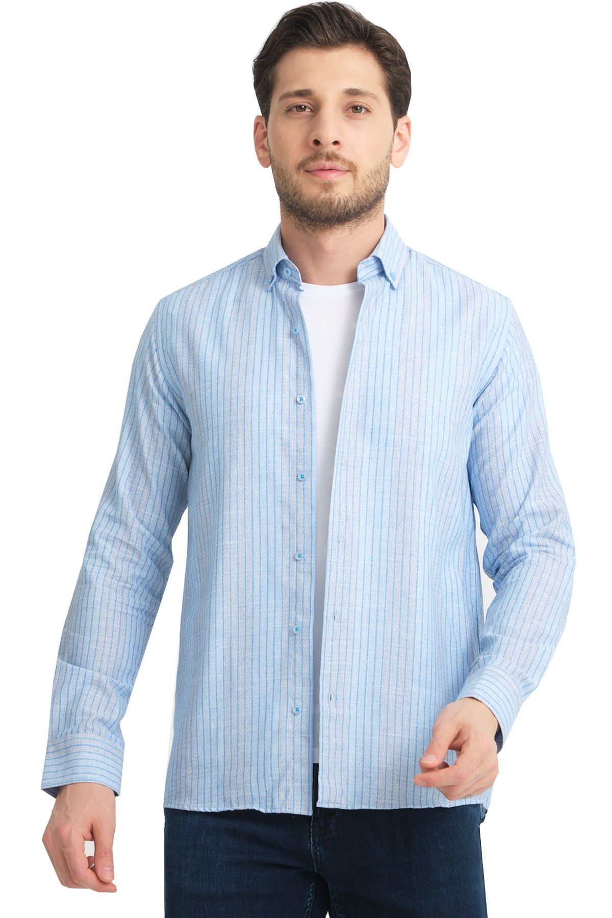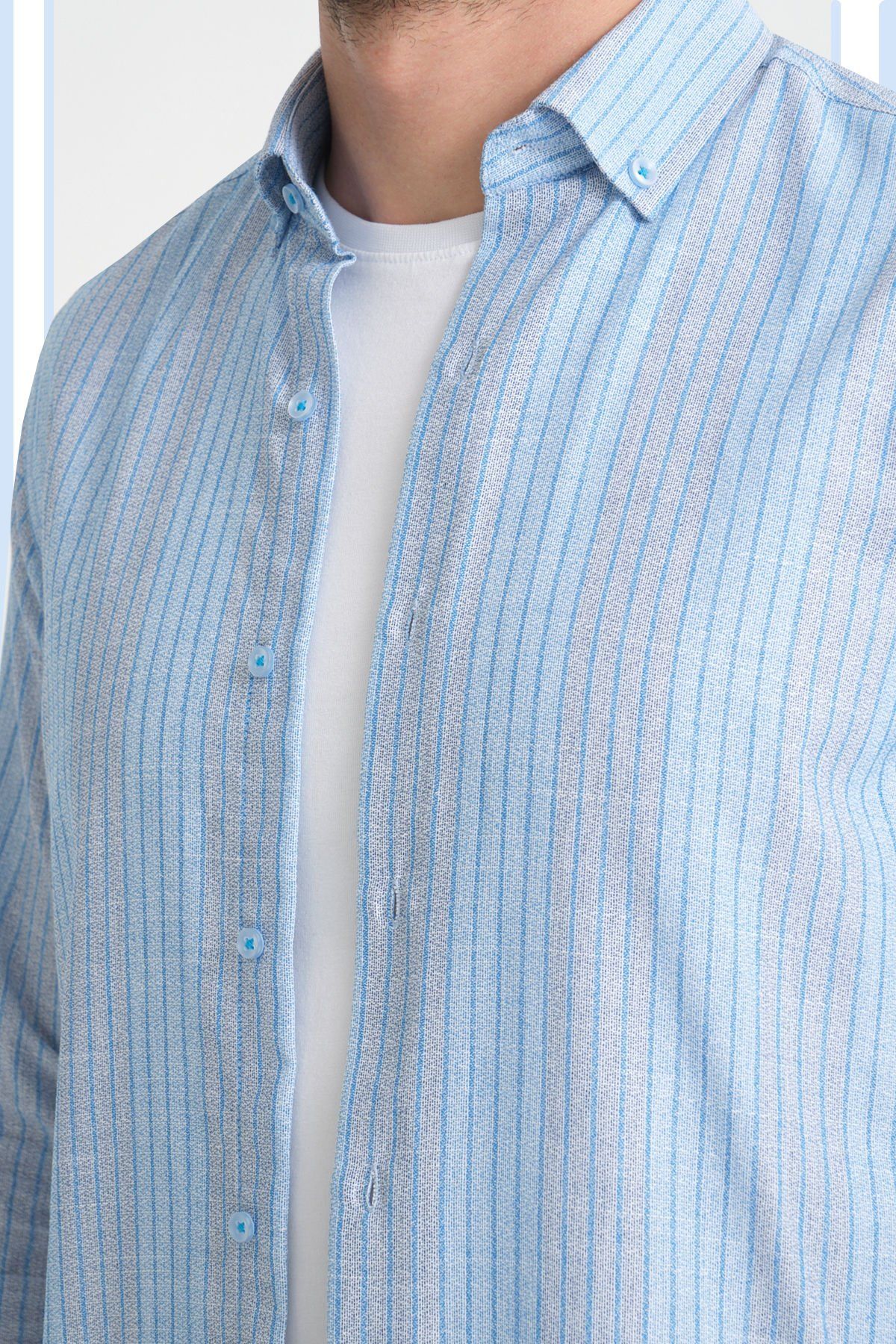 Çizgili cepsiz erkek Gömlek ürün vücuda yapışmayan rahat kalıptan üretilmiştir.