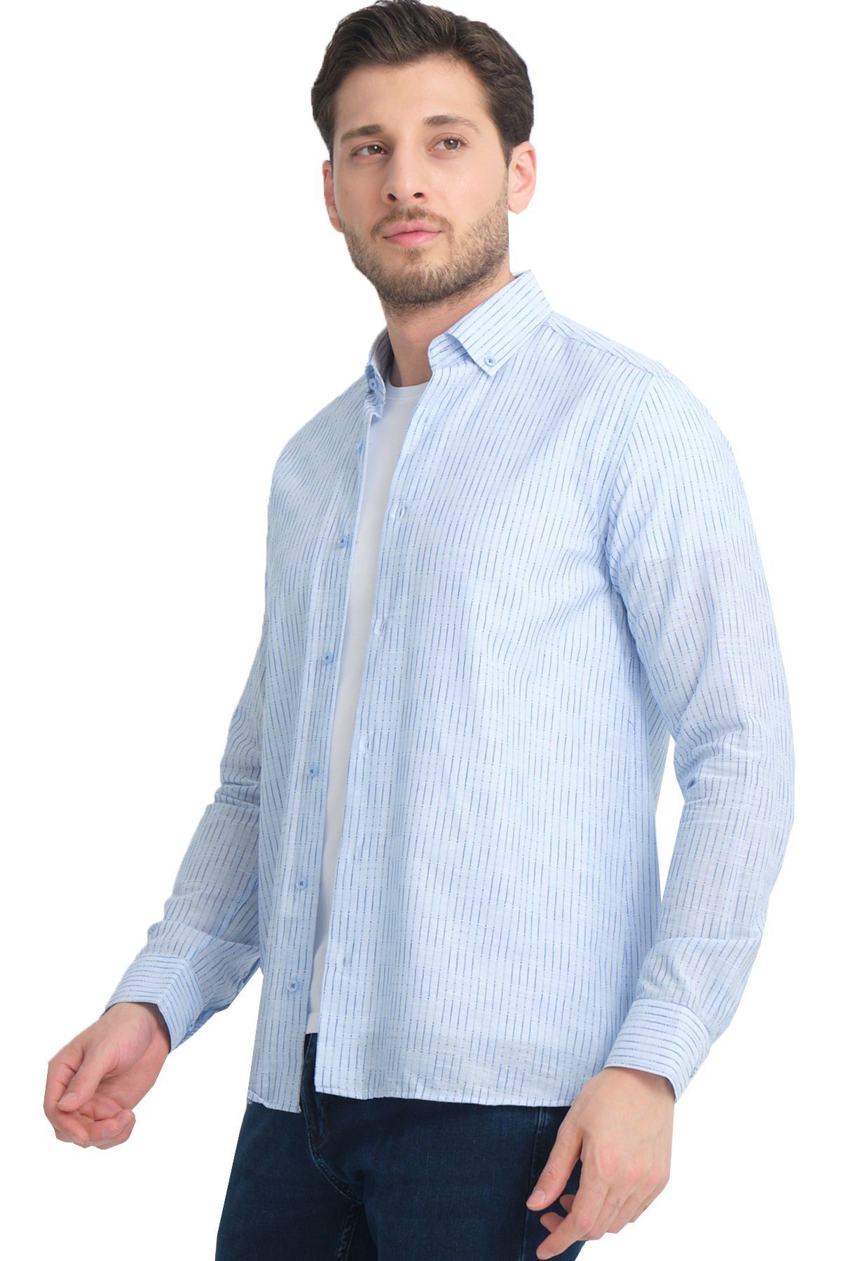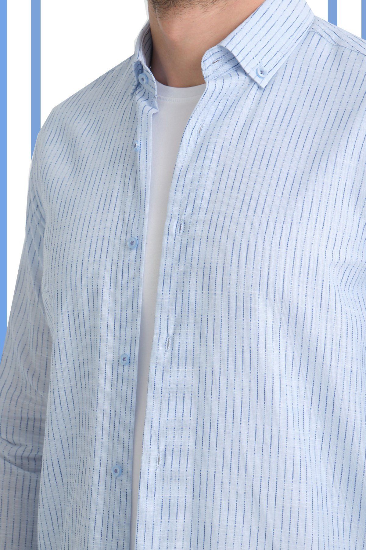 En sağlıklı bilgi için lütfen son görselde ki beden tablomuzu inceleyin. Keten Efektli Cepsiz Uzun Kollu Erkek Gömlek