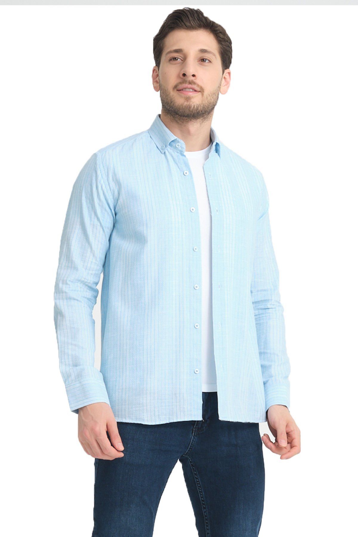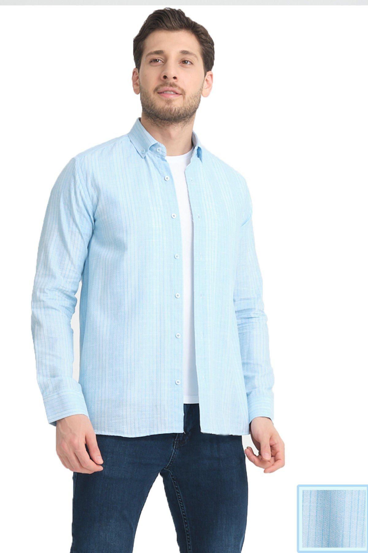 En sağlıklı bilgi için lütfen son görselde ki beden tablomuzu inceleyin. Keten Efektli Cepsiz Uzun Kollu Erkek Gömlek