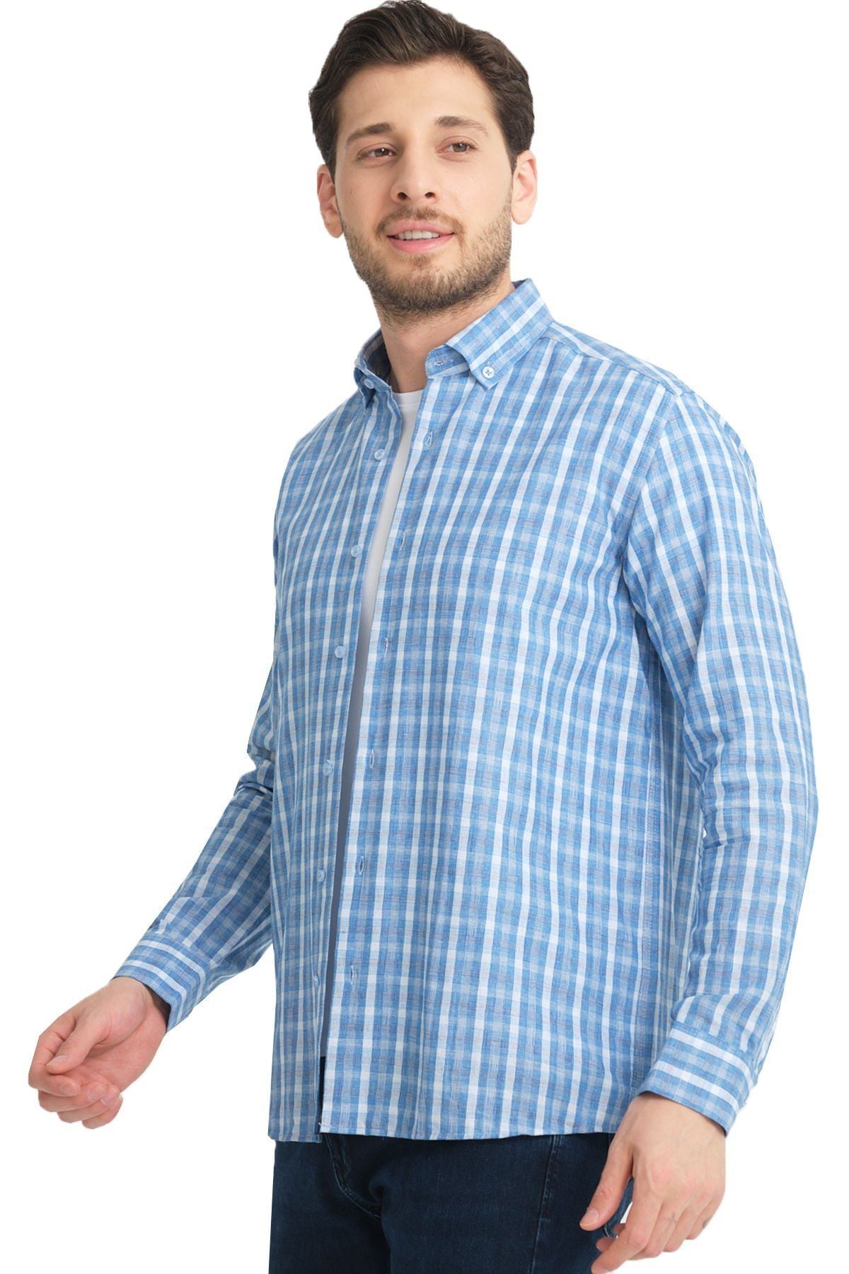 En sağlıklı bilgi için lütfen son görselde ki beden tablomuzu inceleyin. Keten Efektli Cepsiz Uzun Kollu Erkek Gömlek