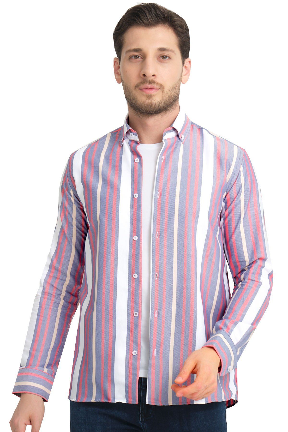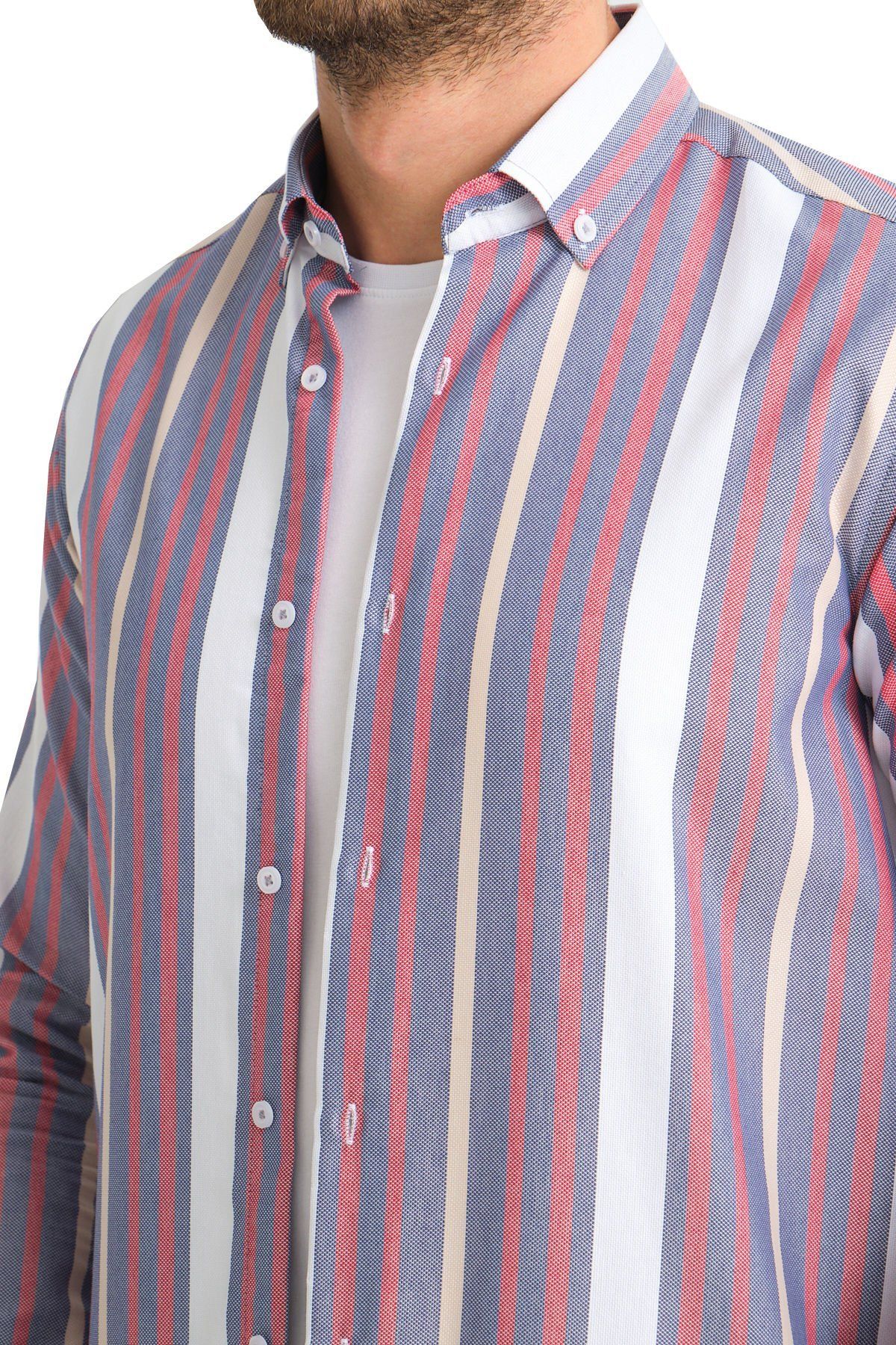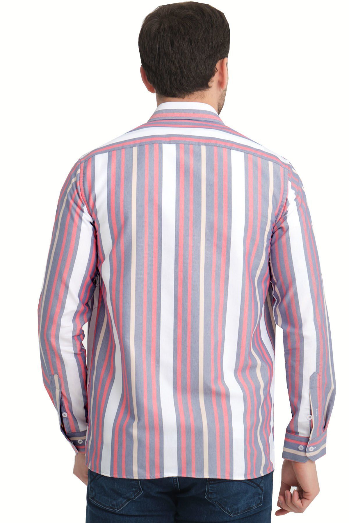 Çizgili cepsiz erkek Gömlek ürün vücuda yapışmayan rahat kalıptan üretilmiştir.